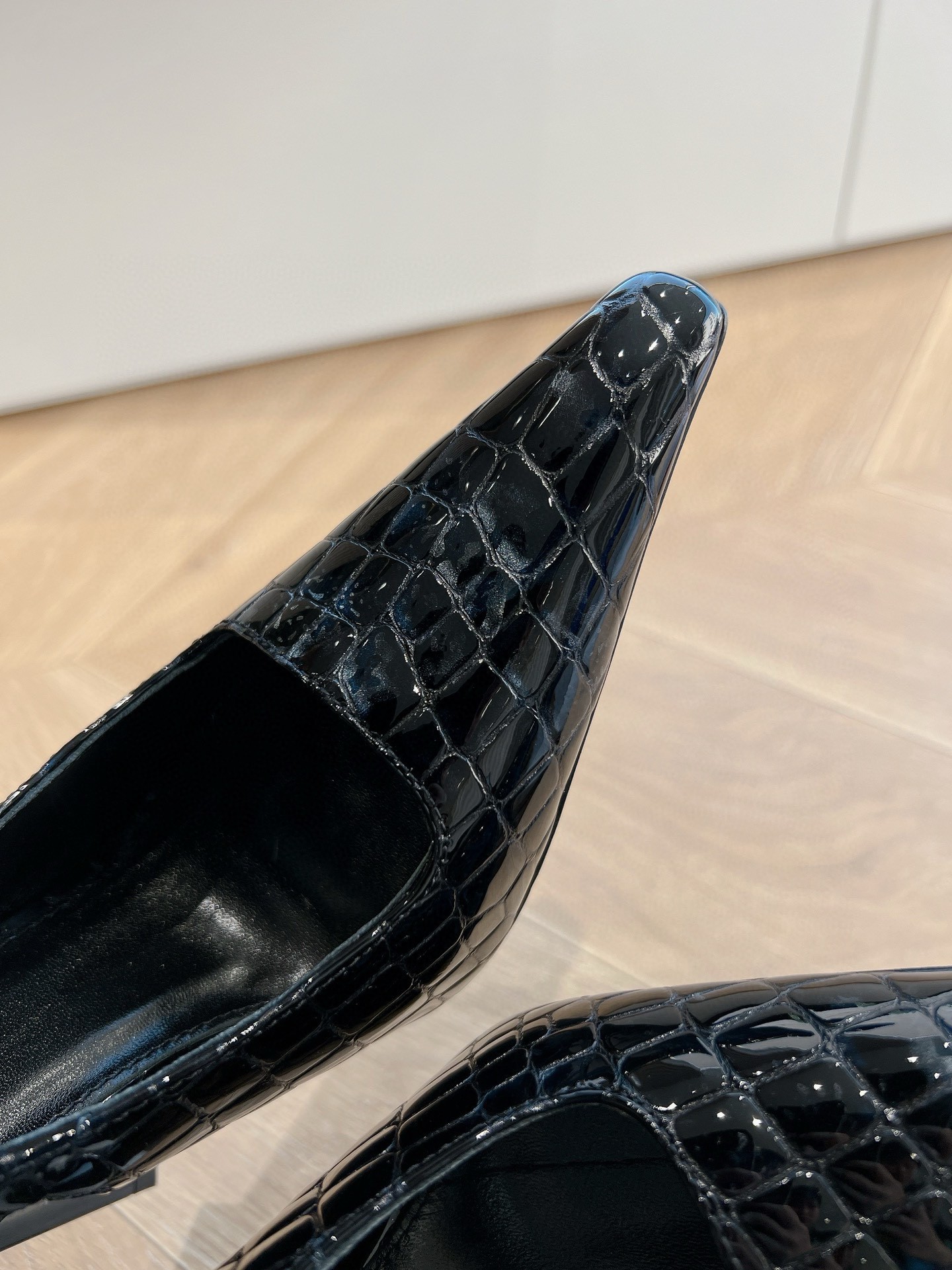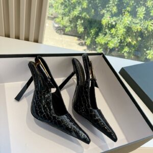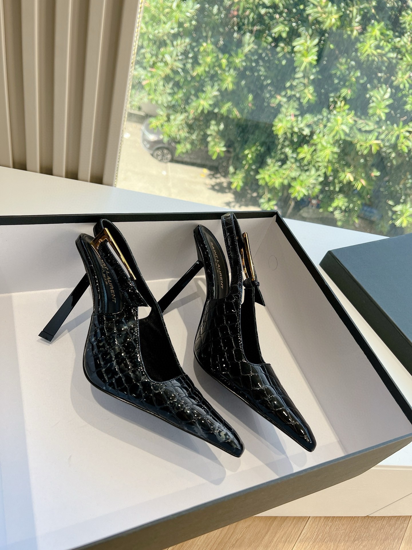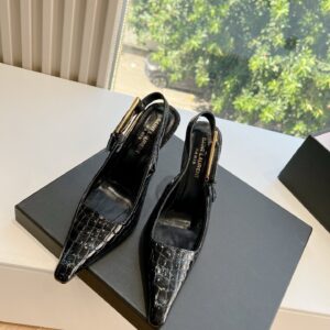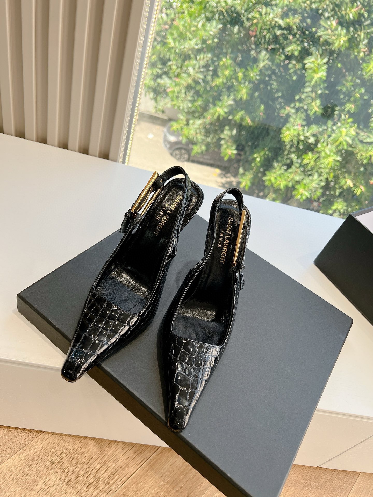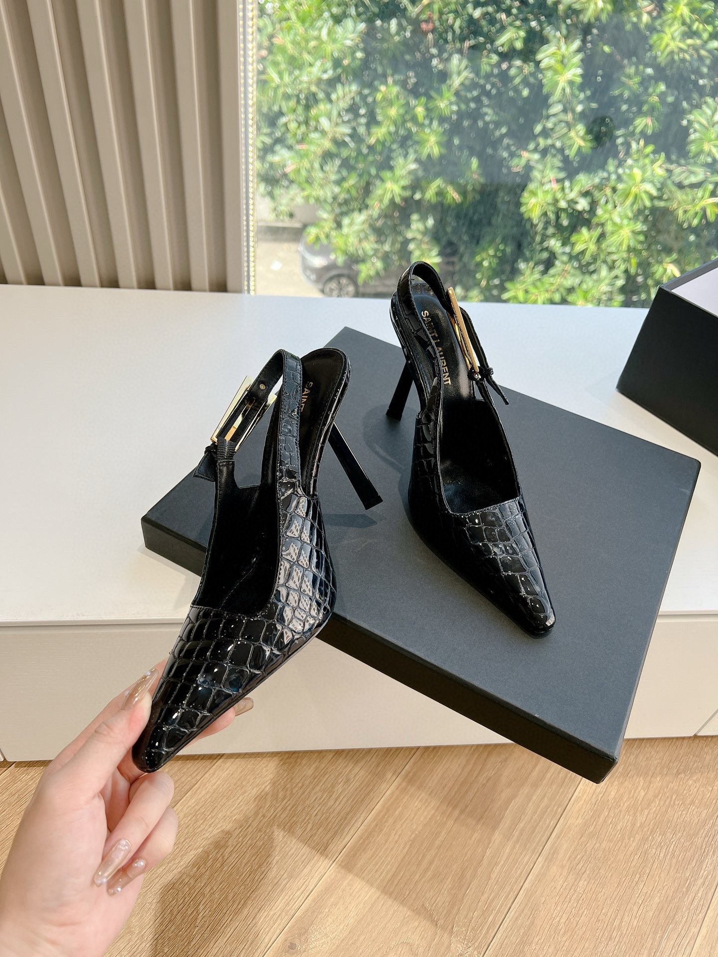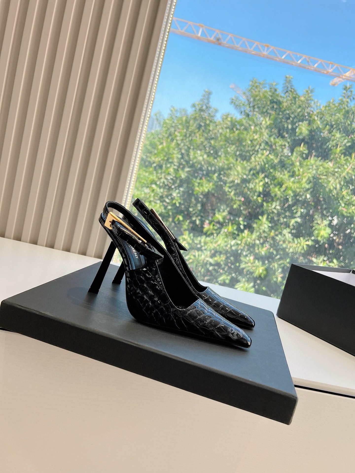 Saint Laurent’s Lee slingbacks will elevate any look thanks to the pointed toe and covered asymmetric stiletto heels. They’ve been made from crocodile-embossed leather and have an exaggerated gold-tone buckle.