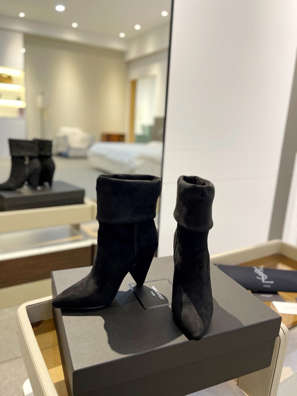 Take your Saint Laurent affections right down to your toes with the Niki ankle boots. Crafted in suede leather, the striking silhouette features a conical heel, pointed toe and fold-over cuff – and that’s all without mentioning the iconic YSL monogram that’s neatly spotlighted to one side.
