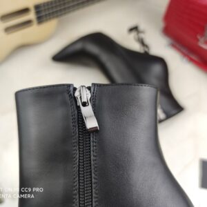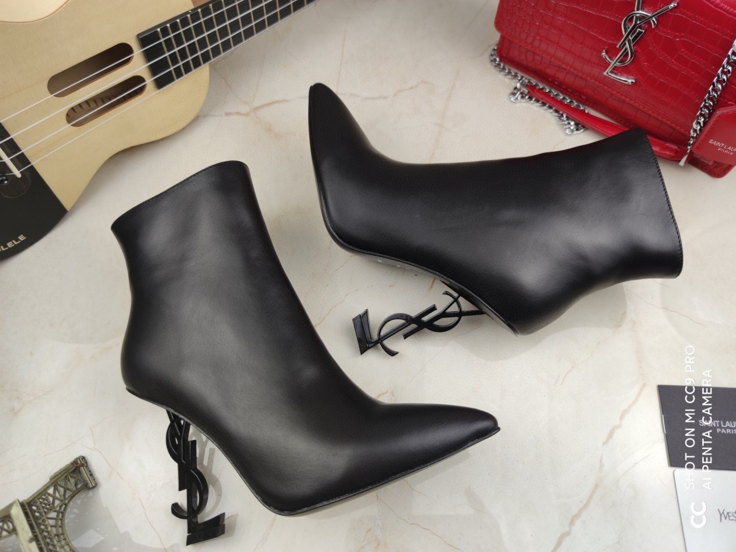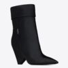 A striking silhouette that savours the designer’s coveted monogram, Saint Laurent’s Opyum boots are realised in smooth leather, balanced atop a statement YSL-crafted heel. Boasting a softly pointed toe and ankle cut that elongates the legs, they beg to be paird with your finest tailoring for a contemporary take on refined eveningwear.