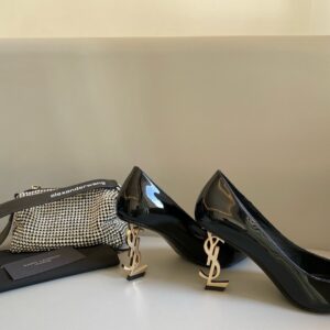 Shoe-lovers are set to fall head over heels for Saint Laurent’s Opyum courts. The season’s most talked about shoe, this structural style is set upon the iconic ‘YSL’ heel and boasts a sleek, pointed-toe profile. The high-gloss patent leather coating adds to the lustre, making them even more covetable.