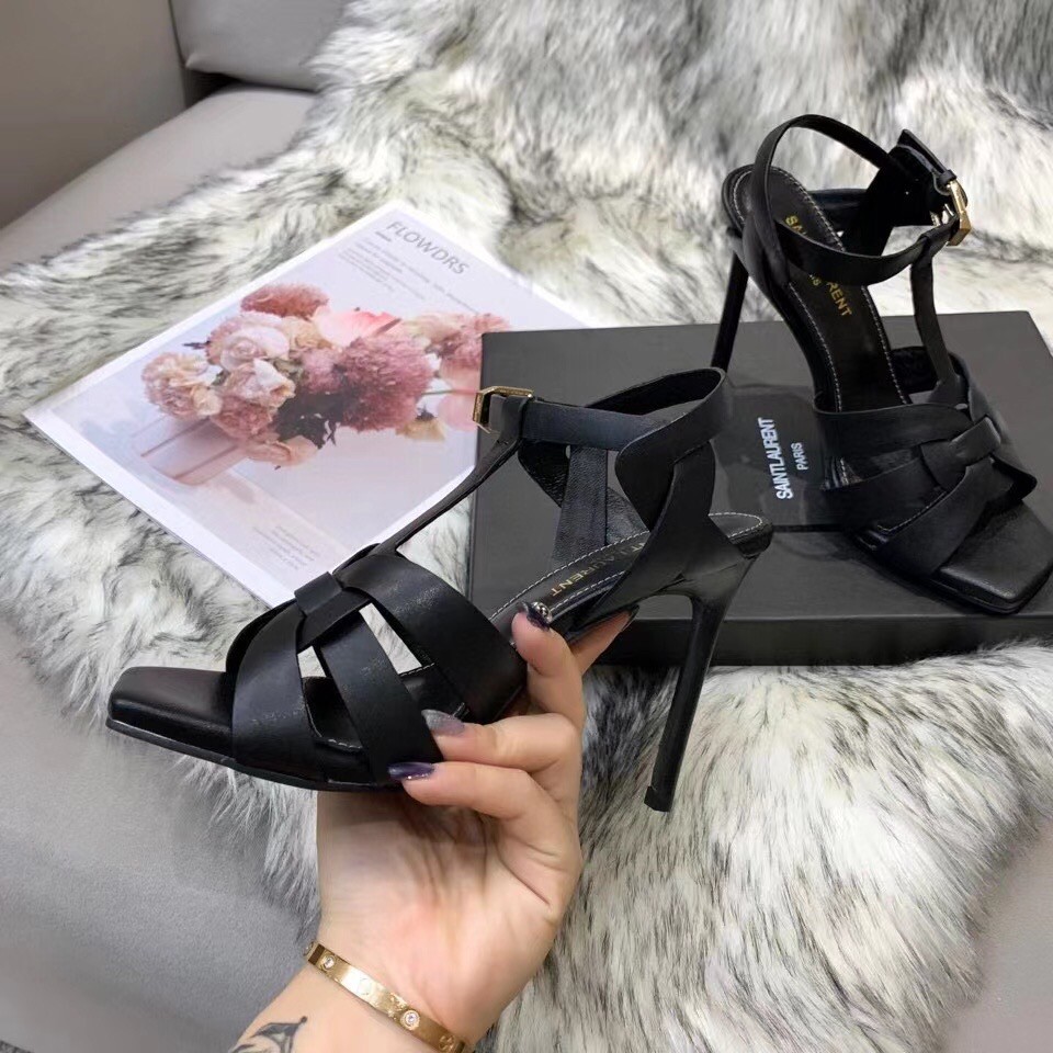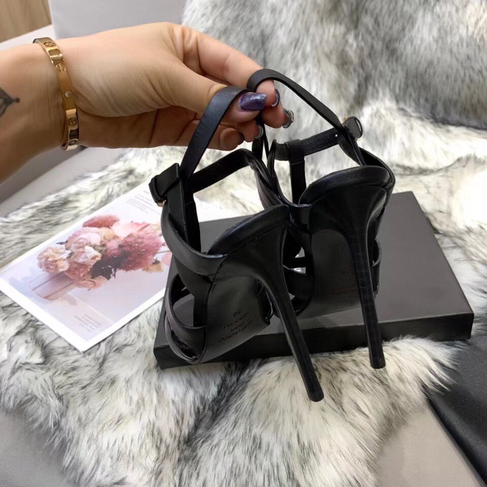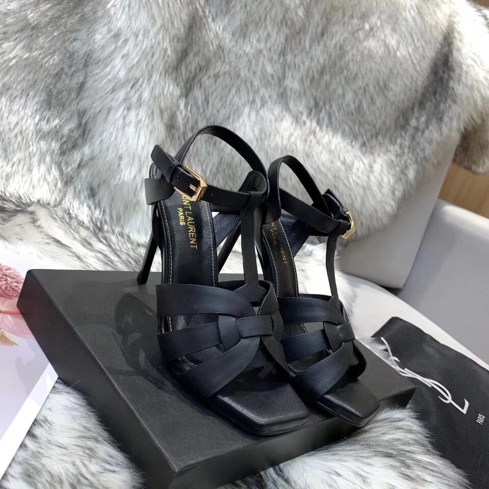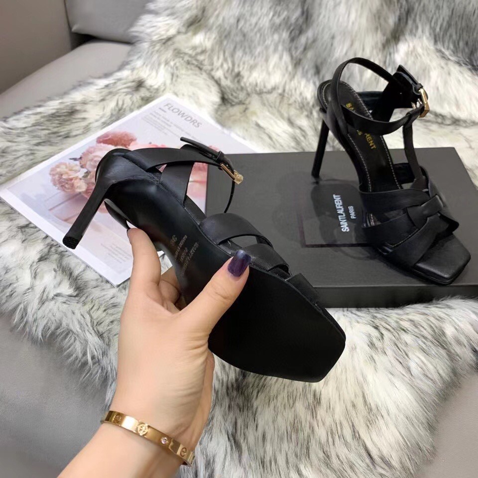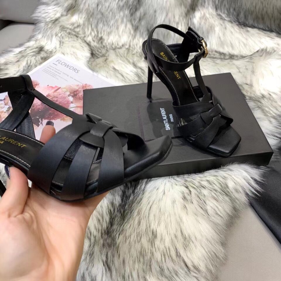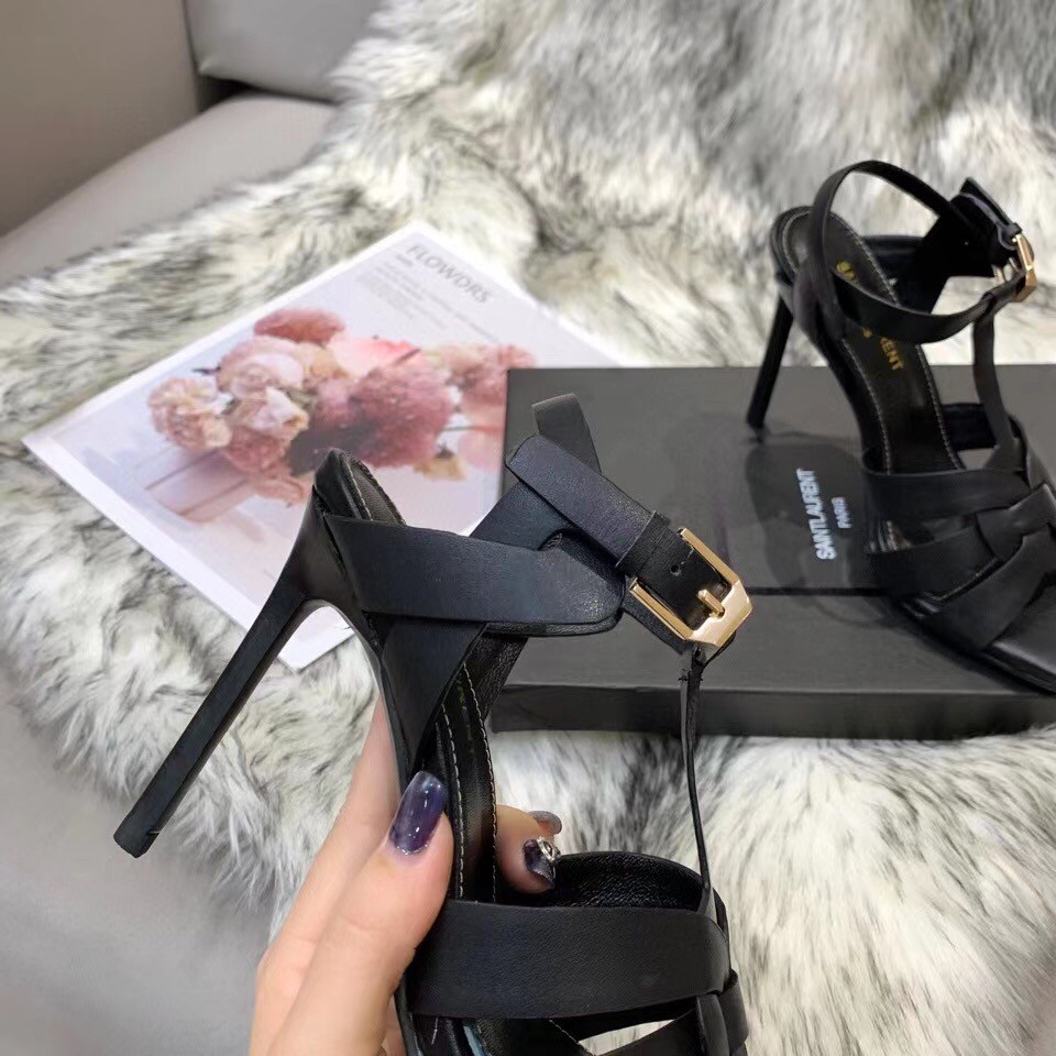 Saint Laurent Tribute Sandals 105 In Black Calfskin