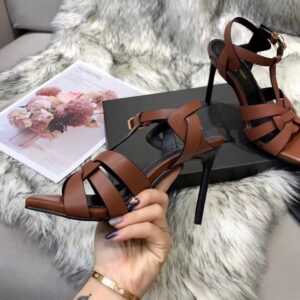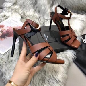 Saint Laurent Tribute Sandals 105 In Brown Calfskin