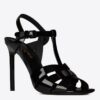 A timeless addition to your shoe portfolio, Saint Laurent’s signature Tribute sandals are updated with an intriguing intertwining strap for a unique touch. Crafted from glossy patent leather and balanced atop a towering stiletto heel for ample height, this recognisable pair promises to complement everything from distressed jeans to floor-skimming gowns.
