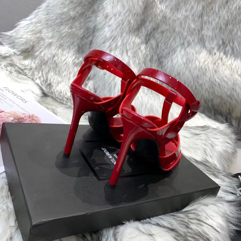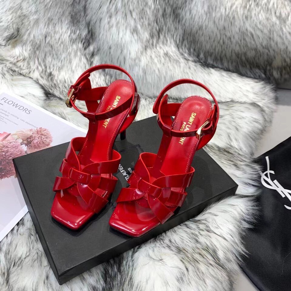 Saint Laurent Tribute Sandals 105 In Red Patent Leather