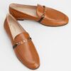 The season’s love of chain accents inspires the Kate loafers from Tod’s, which are adorned with antiqued golden links embossed with the house’s logo. They’re crafted from smooth calfskin with soft leather insoles for comfort. Match their cappuccino shade with other neutrals for an insouciant yet sophisticated look.