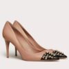 Crafted from soft leather and set atop a high stiletto heel, these Rockstud Alcove pumps from Valentino Garavani are adorned with the maison’s signature Rockstud embellishments at the contrasting patent leather toecap.