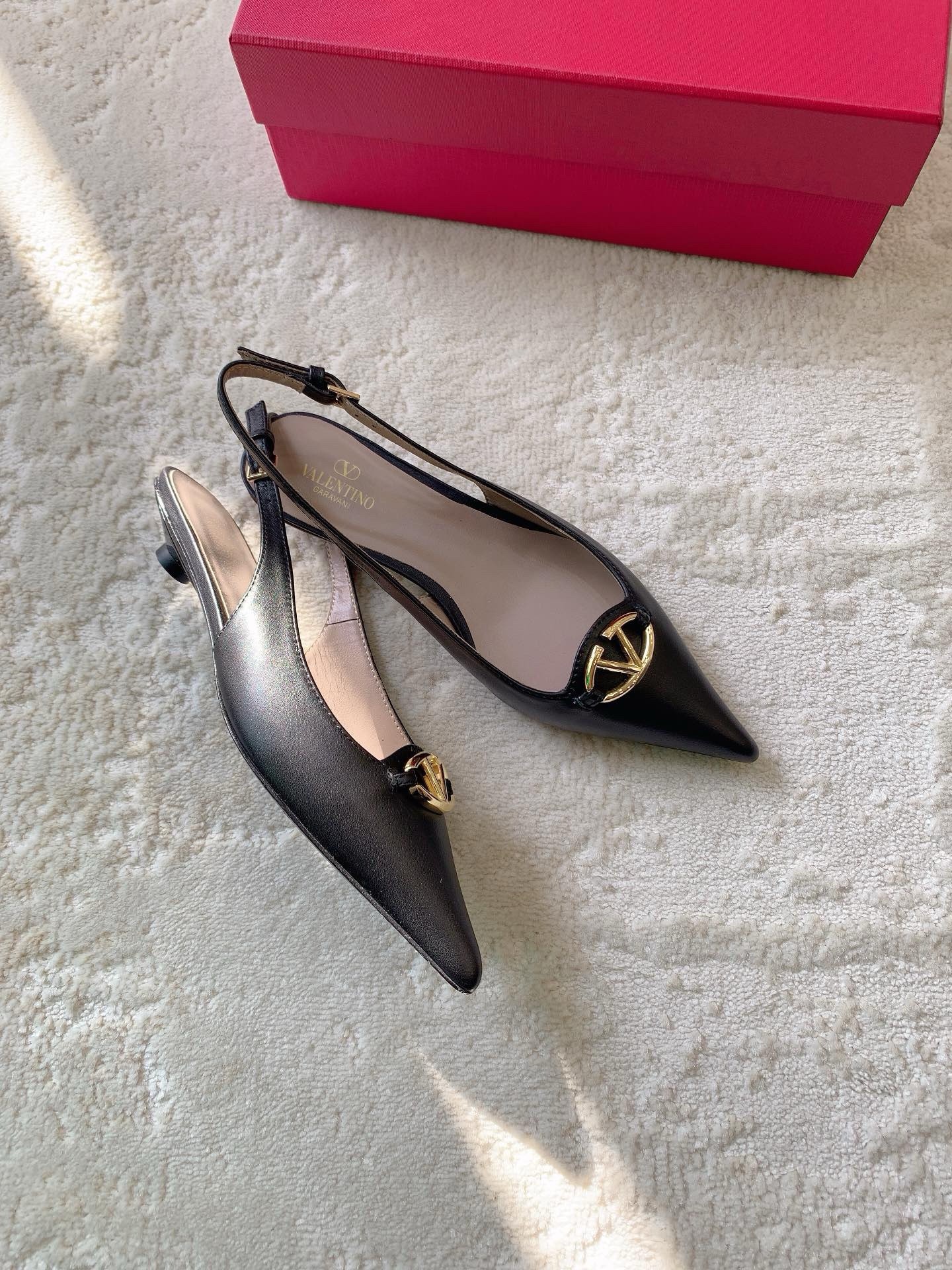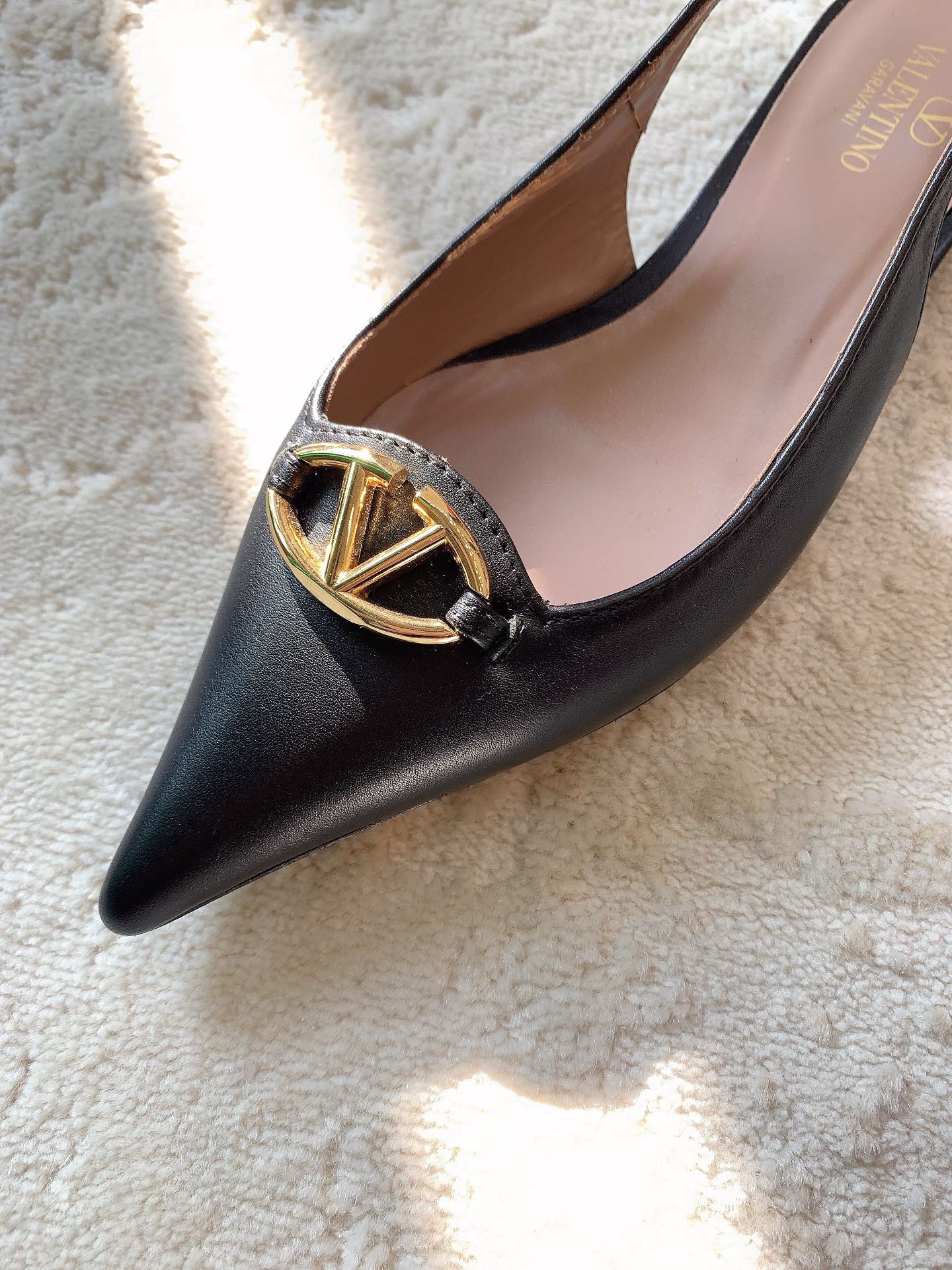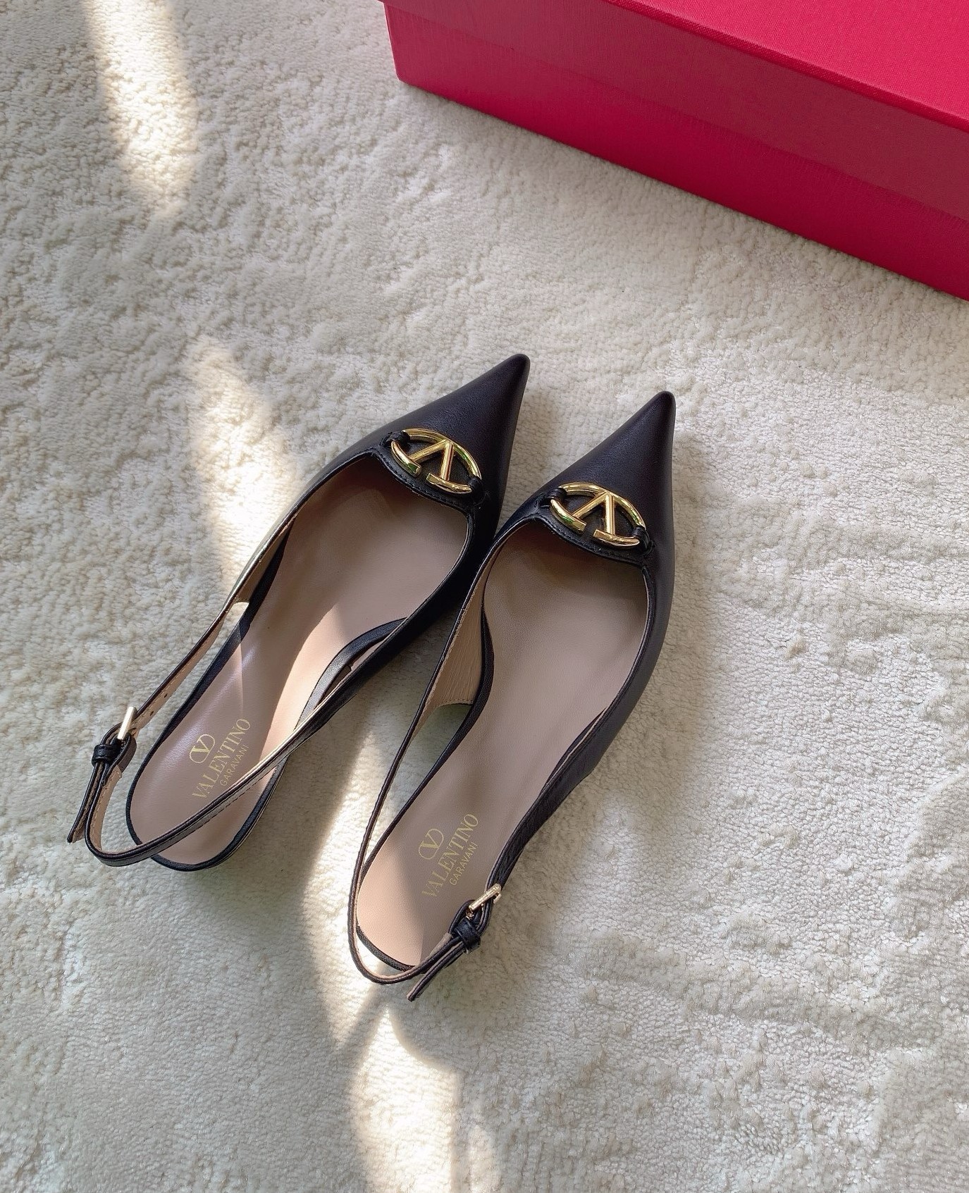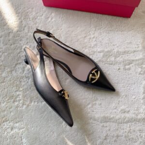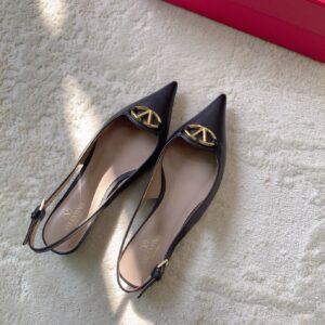 Valentino Bold Edition VLogo Slingback Ballerinas in Black Leather