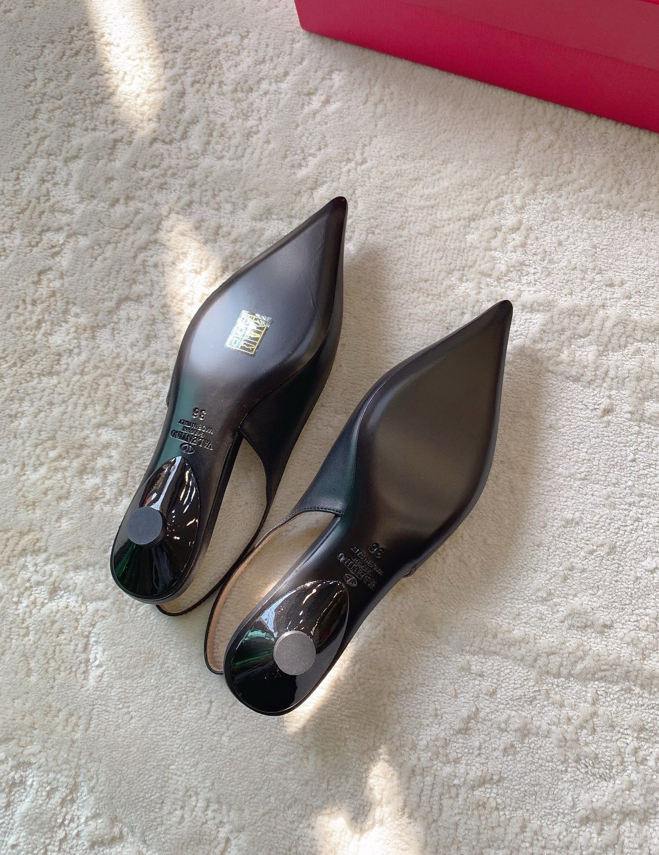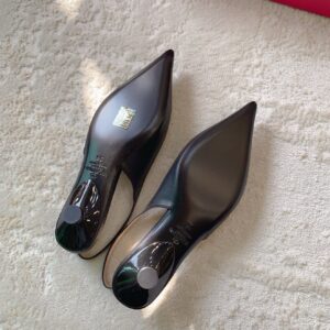 Valentino Garavani’s ‘VLOGO Moon’ heels debuted on the Spring ’24 runway. Crafted from smooth leather, they rest on wearable 20mm heels and have elongated pointed toes topped with polished gold-tone logos. Wear yours with one of the intricate white dresses from the collection.