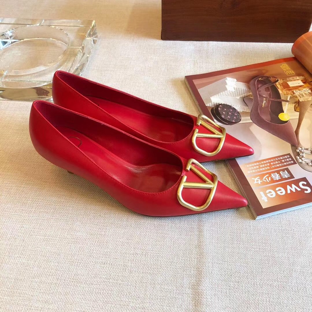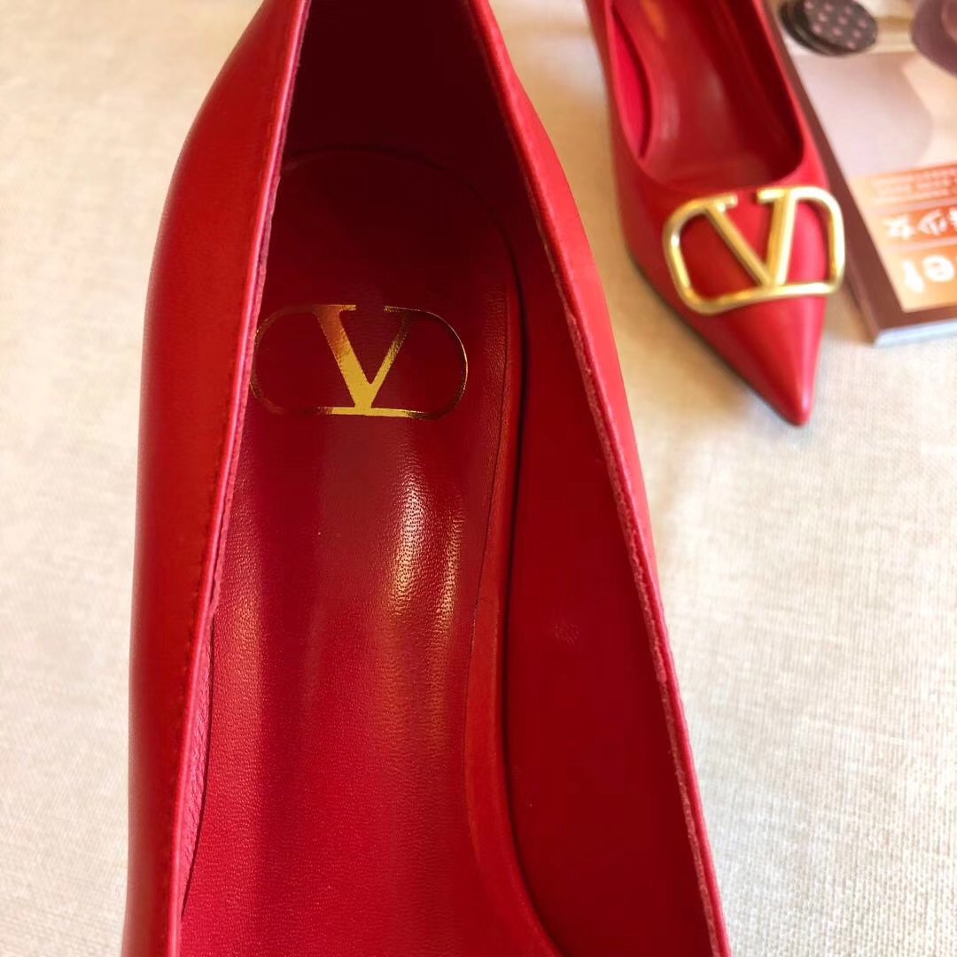 Valentino Garavani Vlogo Pumps 45mm In Red Lambskin
