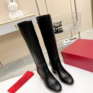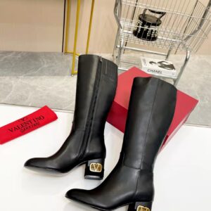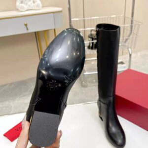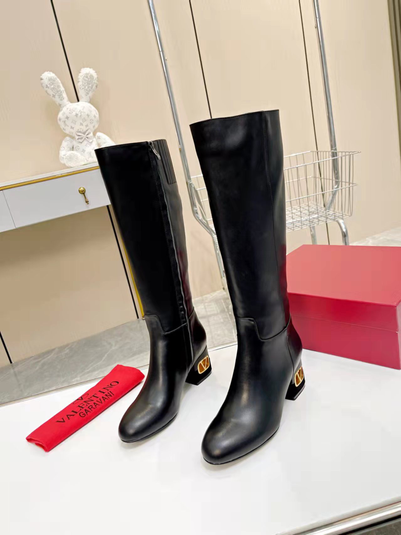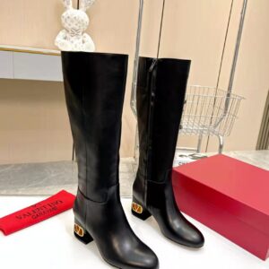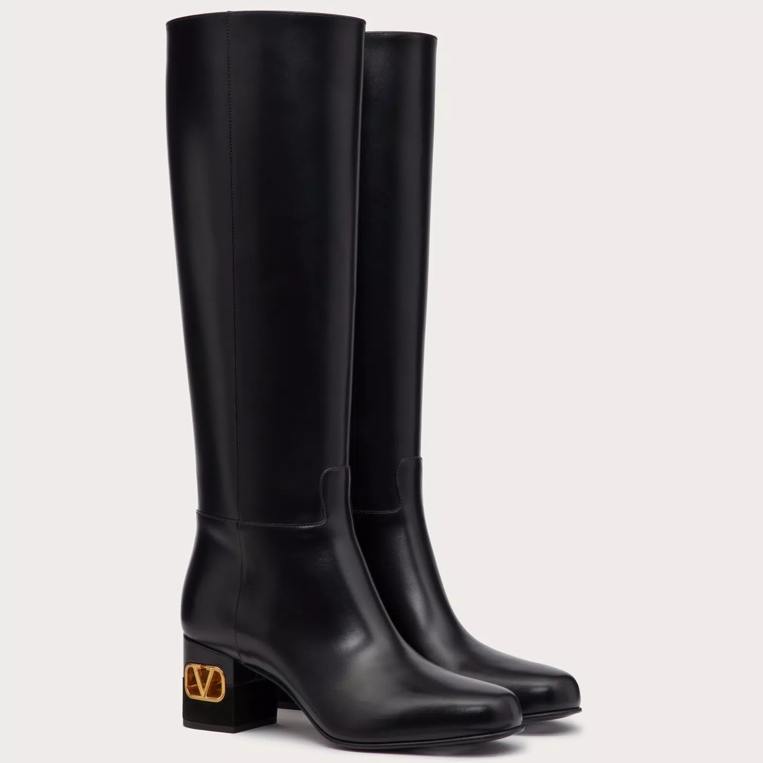 Valentino Garavani adds a signature spin to classic black knee-high boots as showcased on this pair that are detailed with the house’s signature VLogo at the heel.