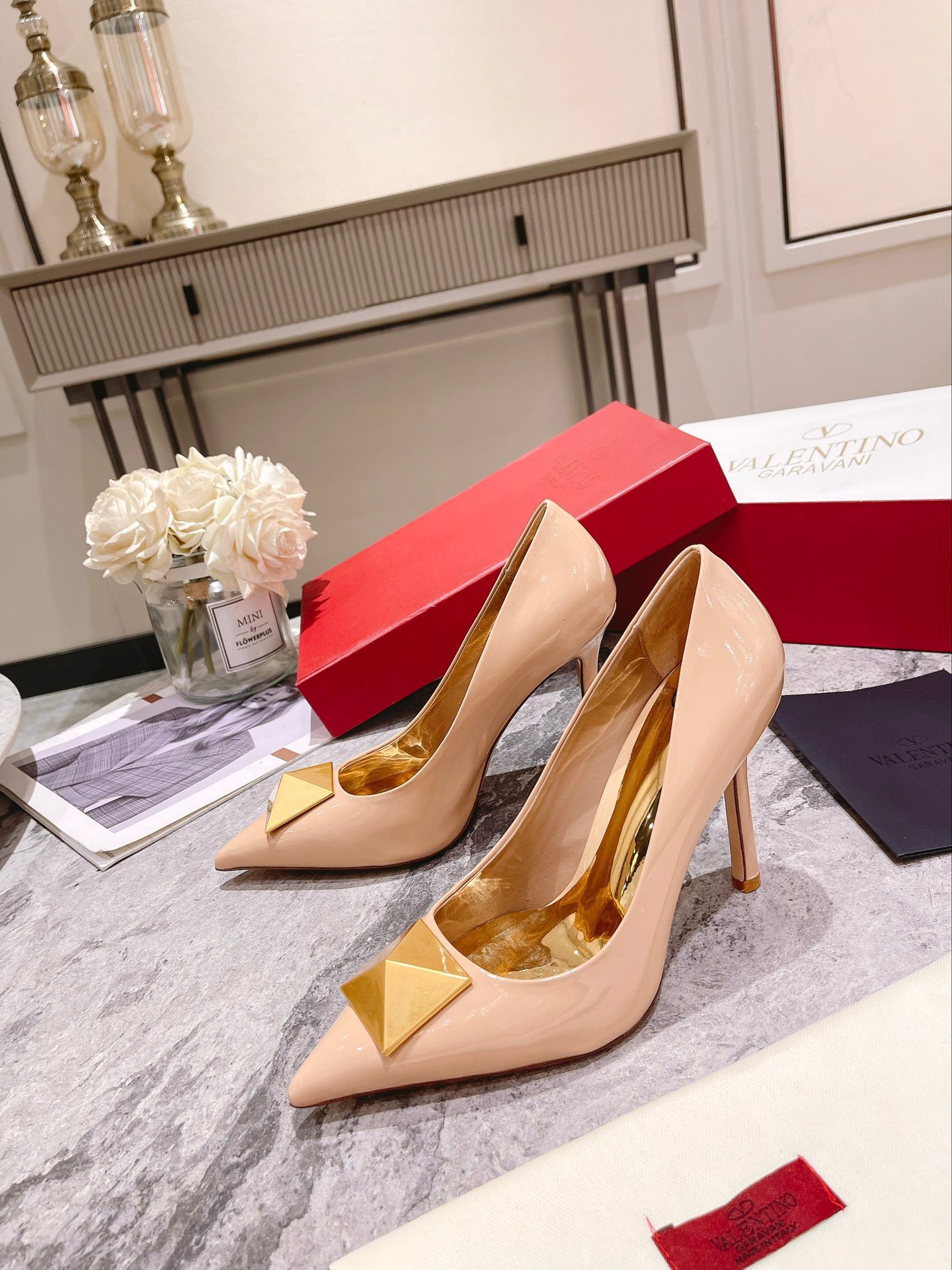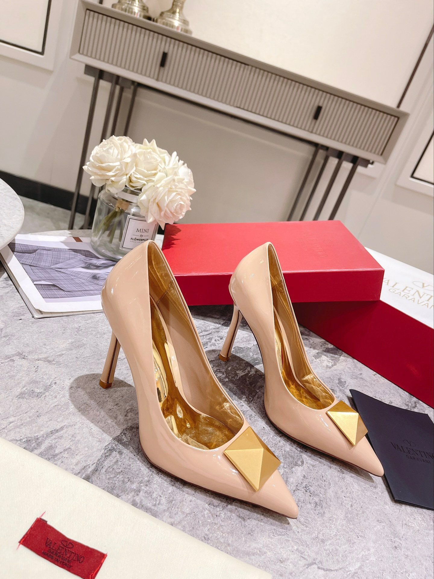 Valentino One Stud Pumps 100mm In Rose Cannelle Patent Calfskin