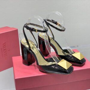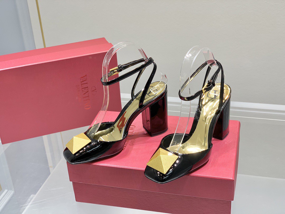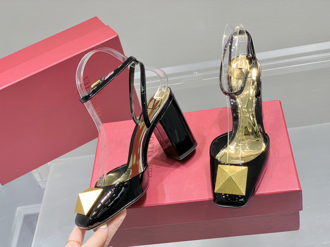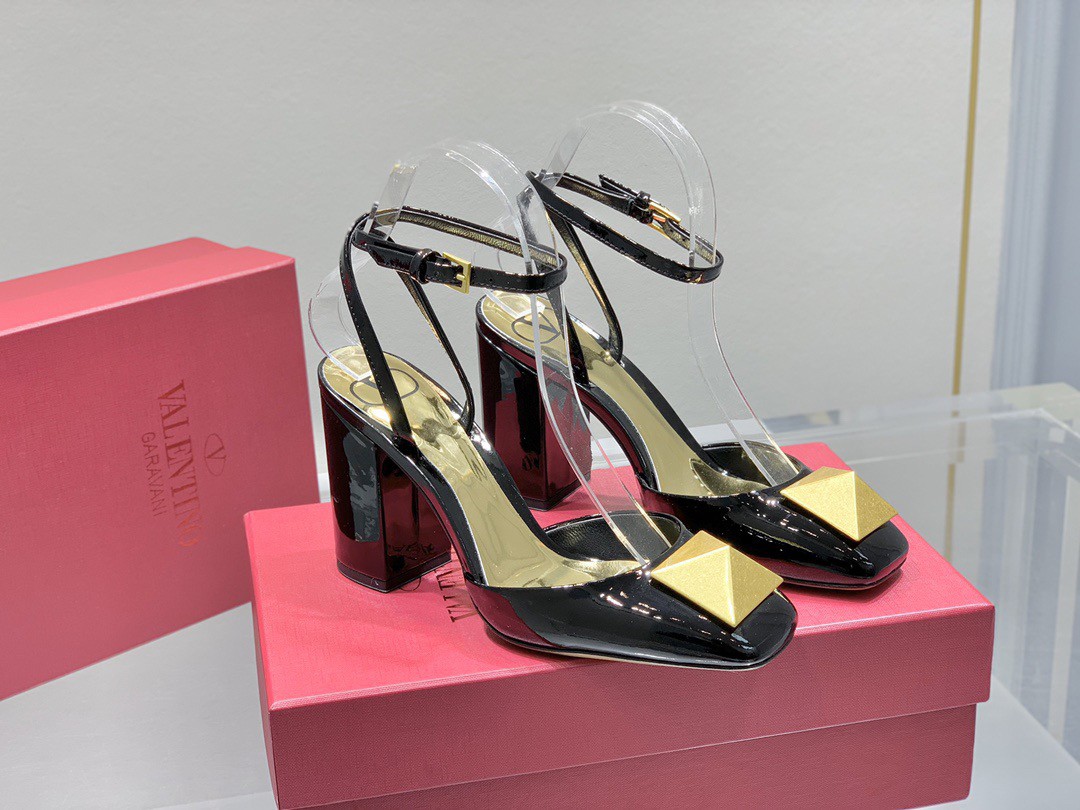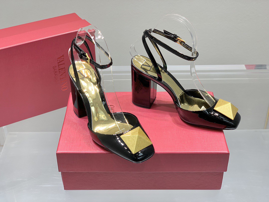 Valentino One Stud Pumps 90mm In Black Patent Leather
