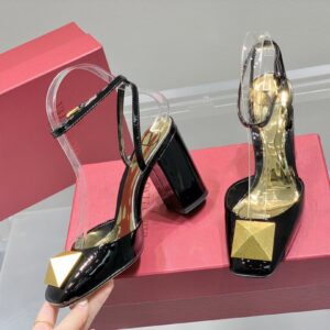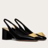 Thanks to the block heels and squared toes, Valentino Garavani’s pumps feel playful and retro. They’re made from patent-leather and topped with a ‘Maxi Stud’ – choose gold accessories to complement the hardware. Wear them with an equally pretty dress or a fluttery skirt.