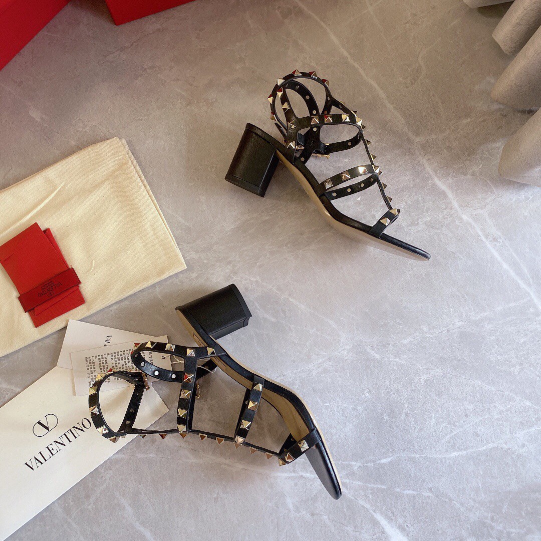 Valentino Rockstud Ankle Strap Sandals 60mm In Black Calfskin