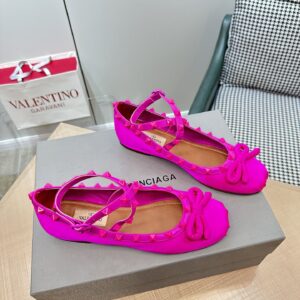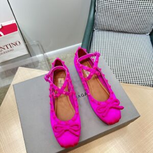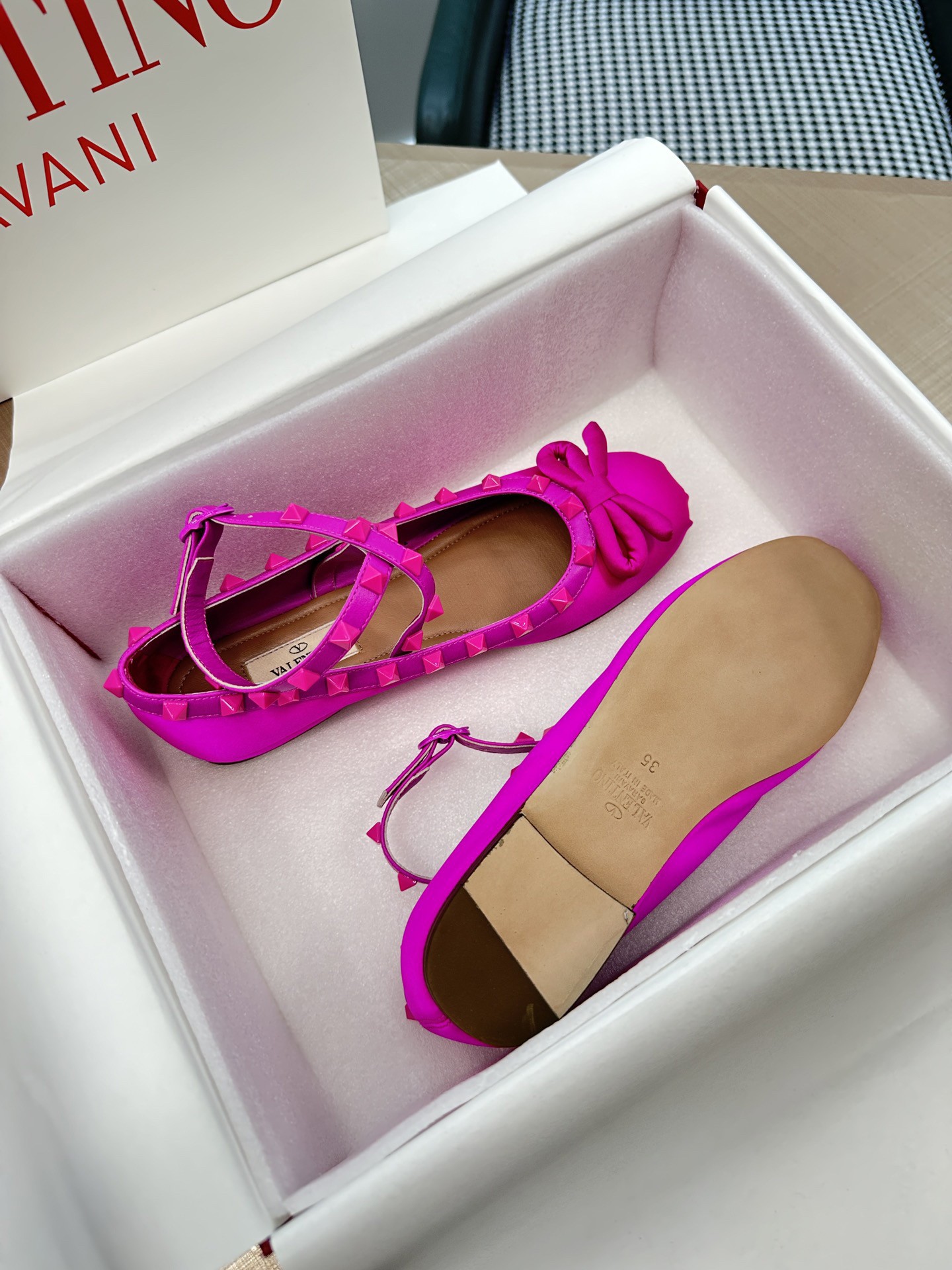 Ballet flats are having a renaissance and Valentino Garavani’s iteration are undeniably classic. Leather trims and pointy ‘Rockstuds’ toughen up the softness of the satin and the pretty bows. The crisscross straps keep your feet comfortably in place.
