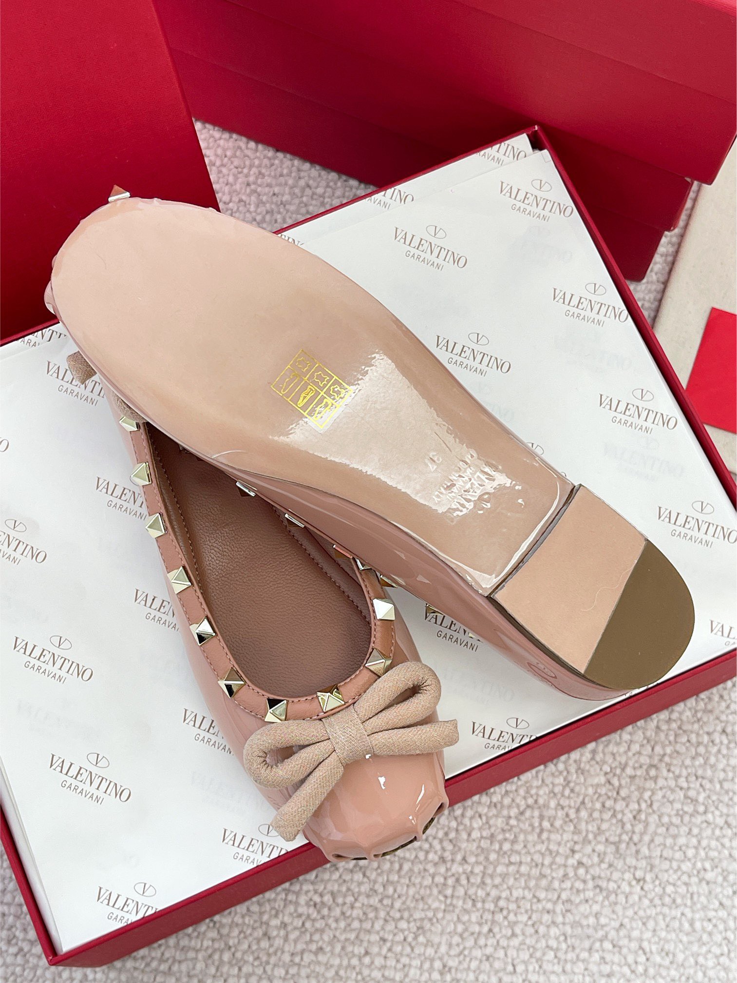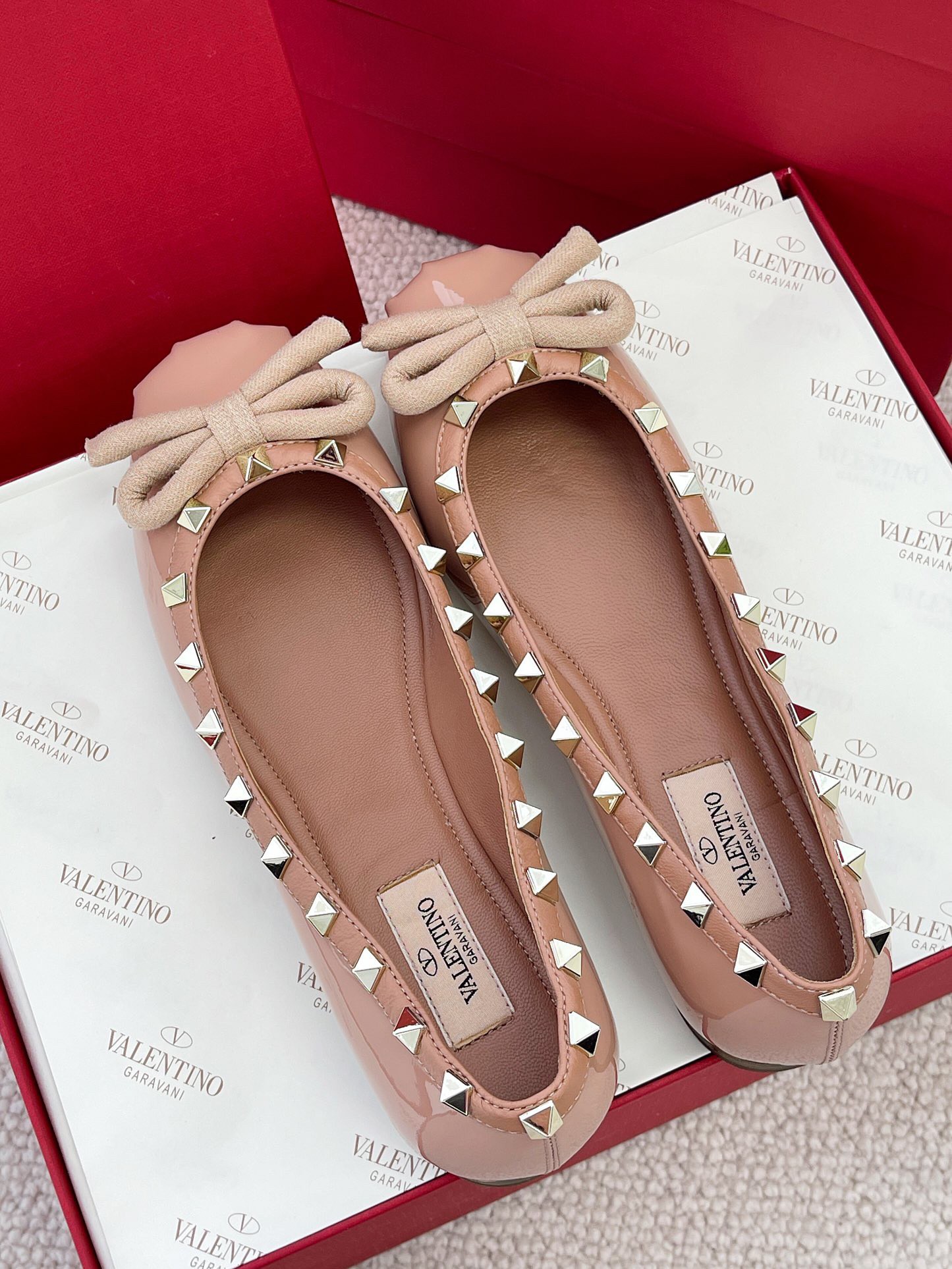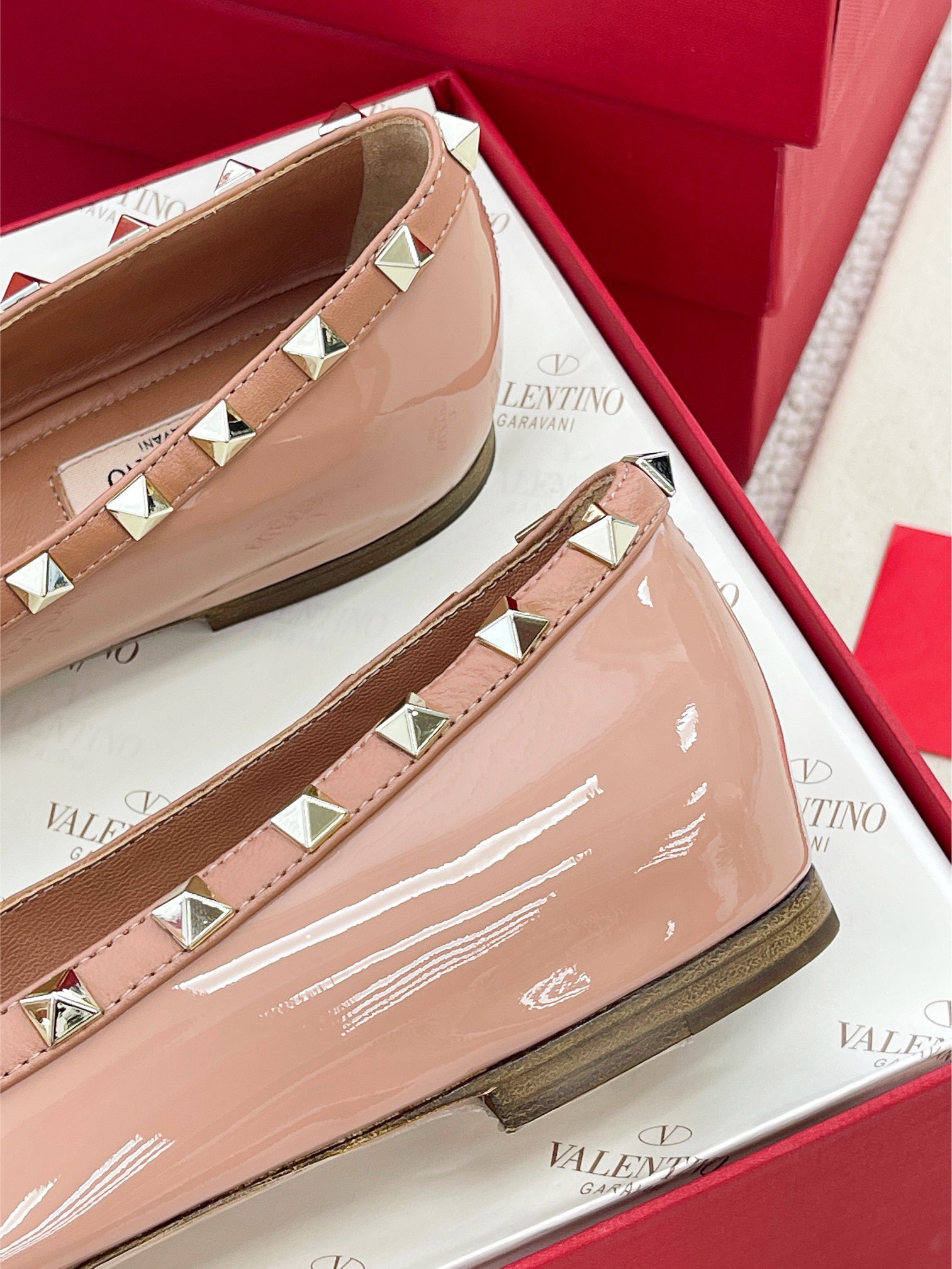 Valentino Rockstud Ballerina In Rose Cannelle Patent Leather