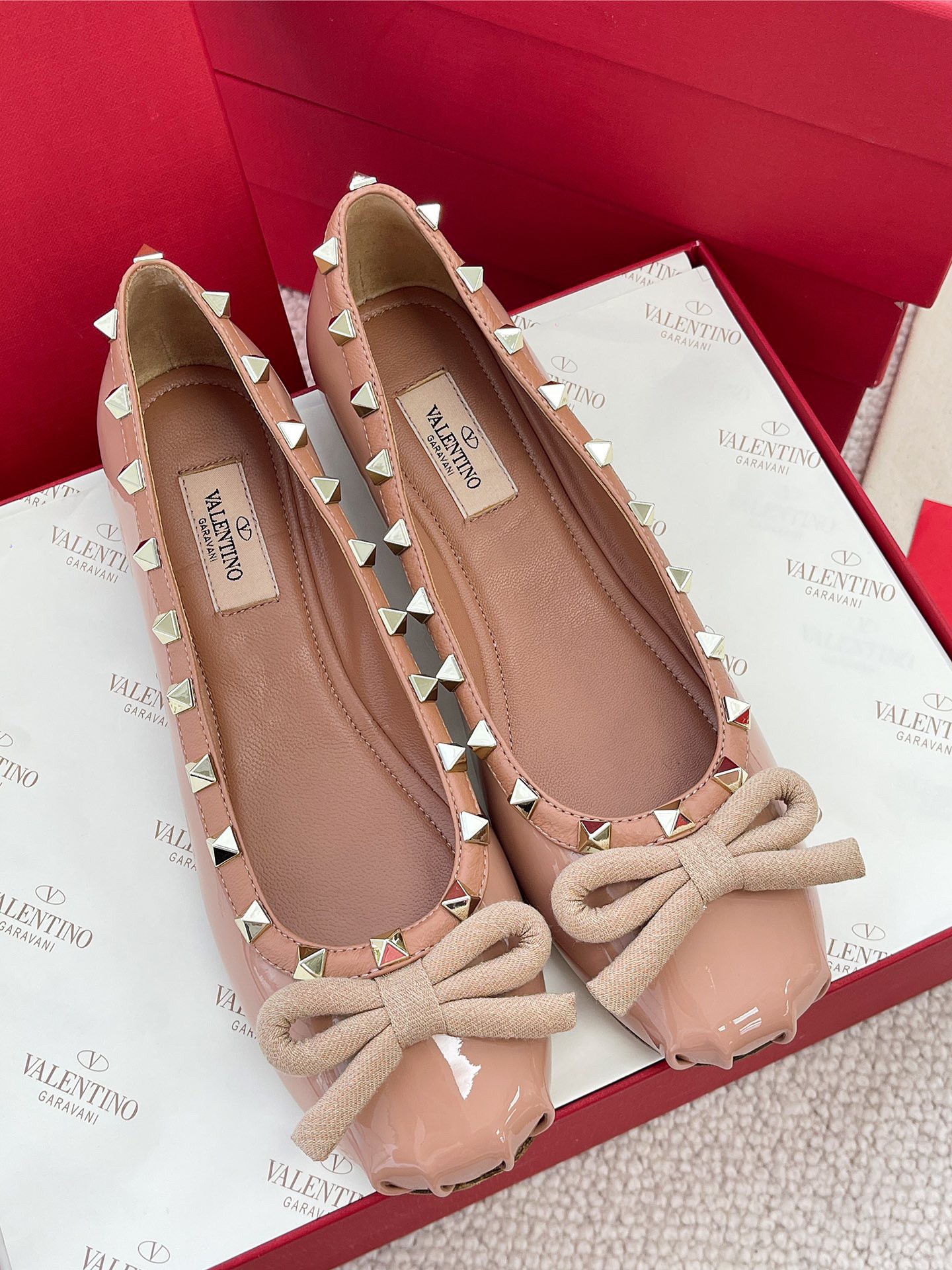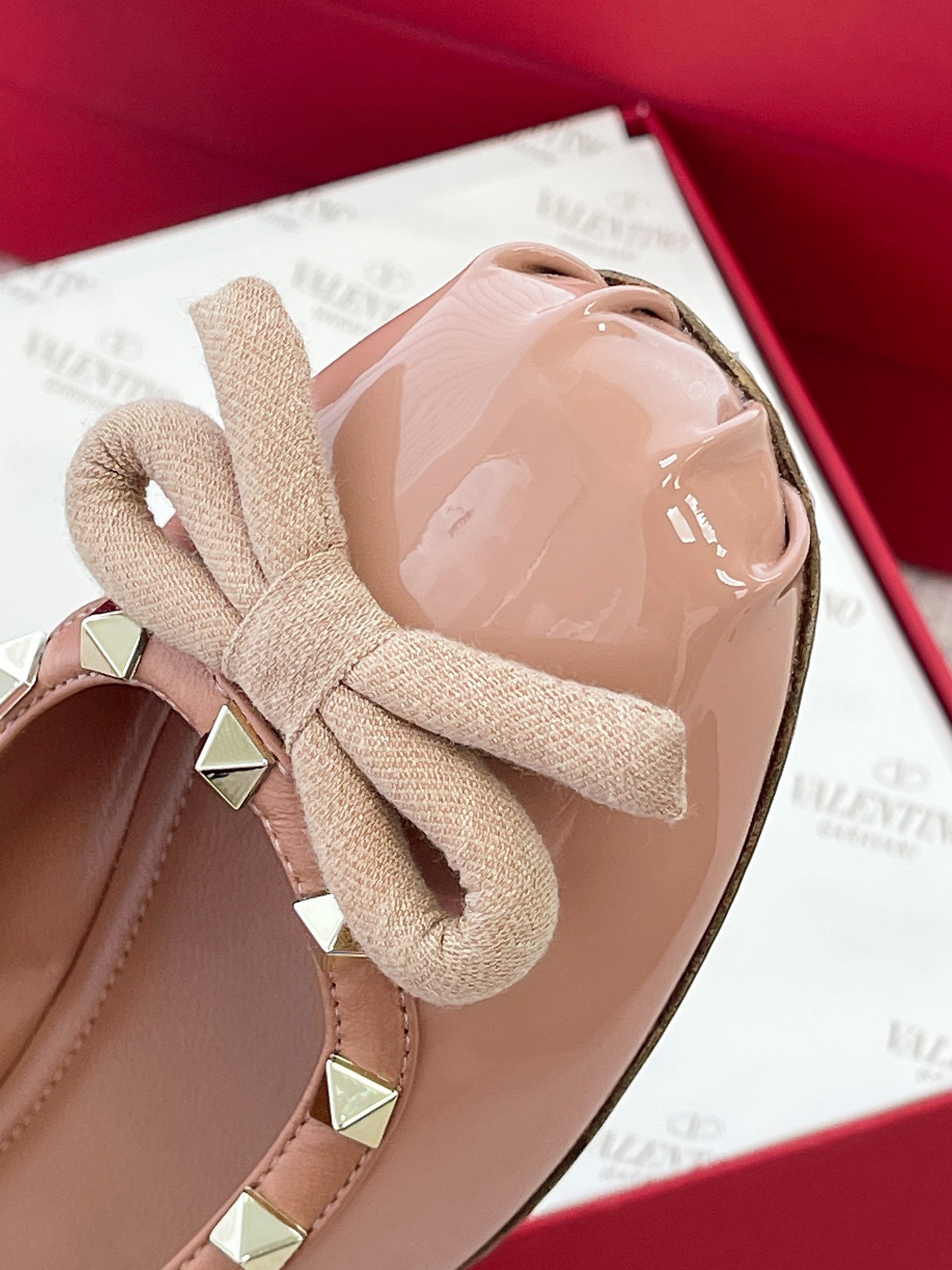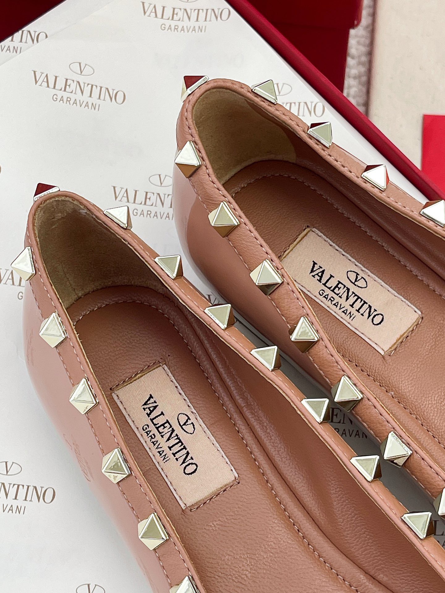 Valentino Rockstud Ballerina In Rose Cannelle Patent Leather