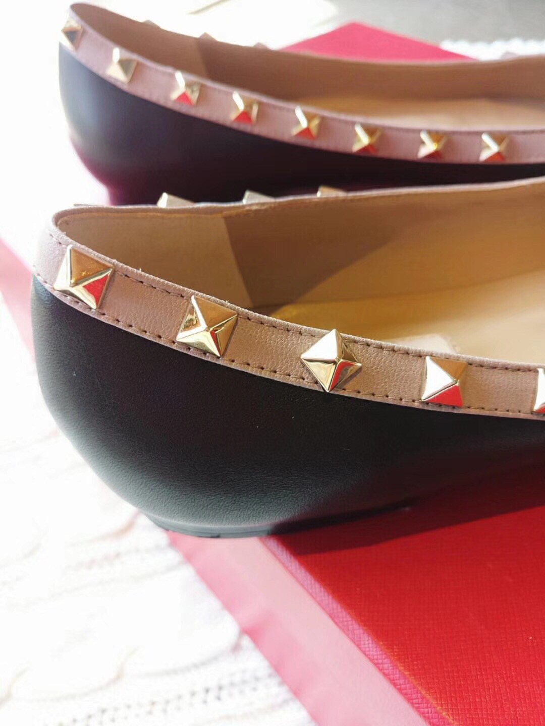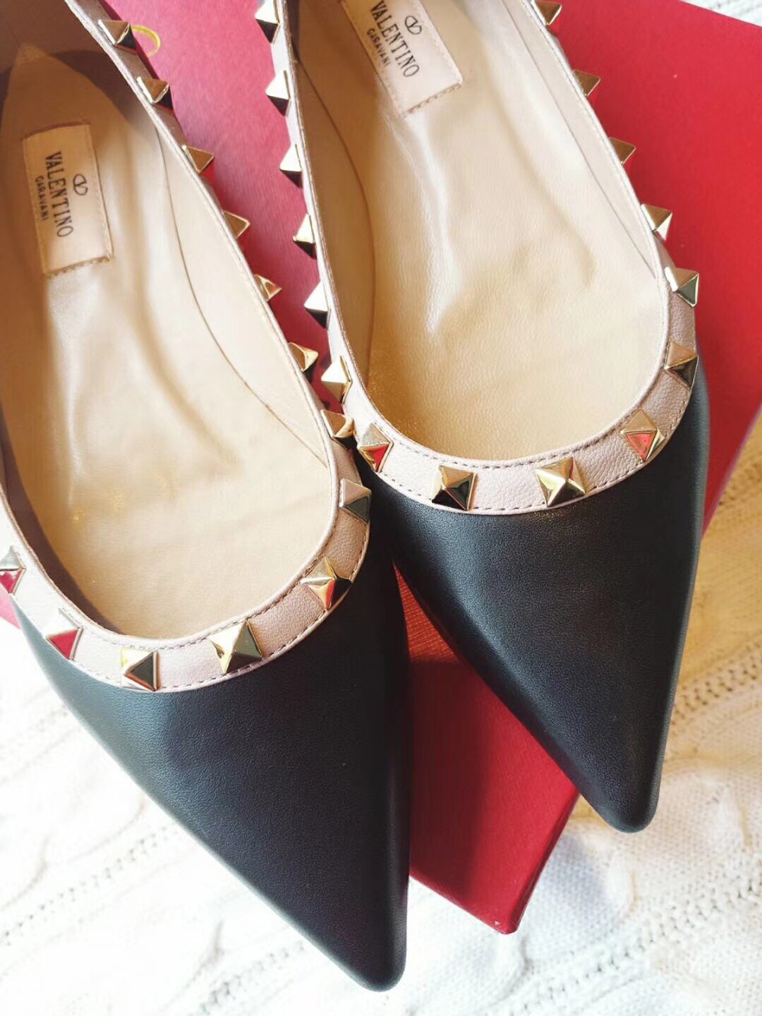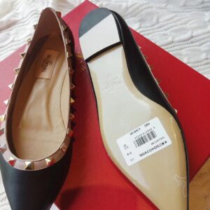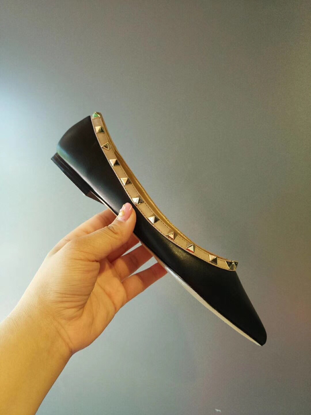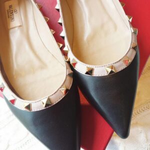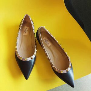 Valentino Rockstud Ballet Flats In Black Calfskin