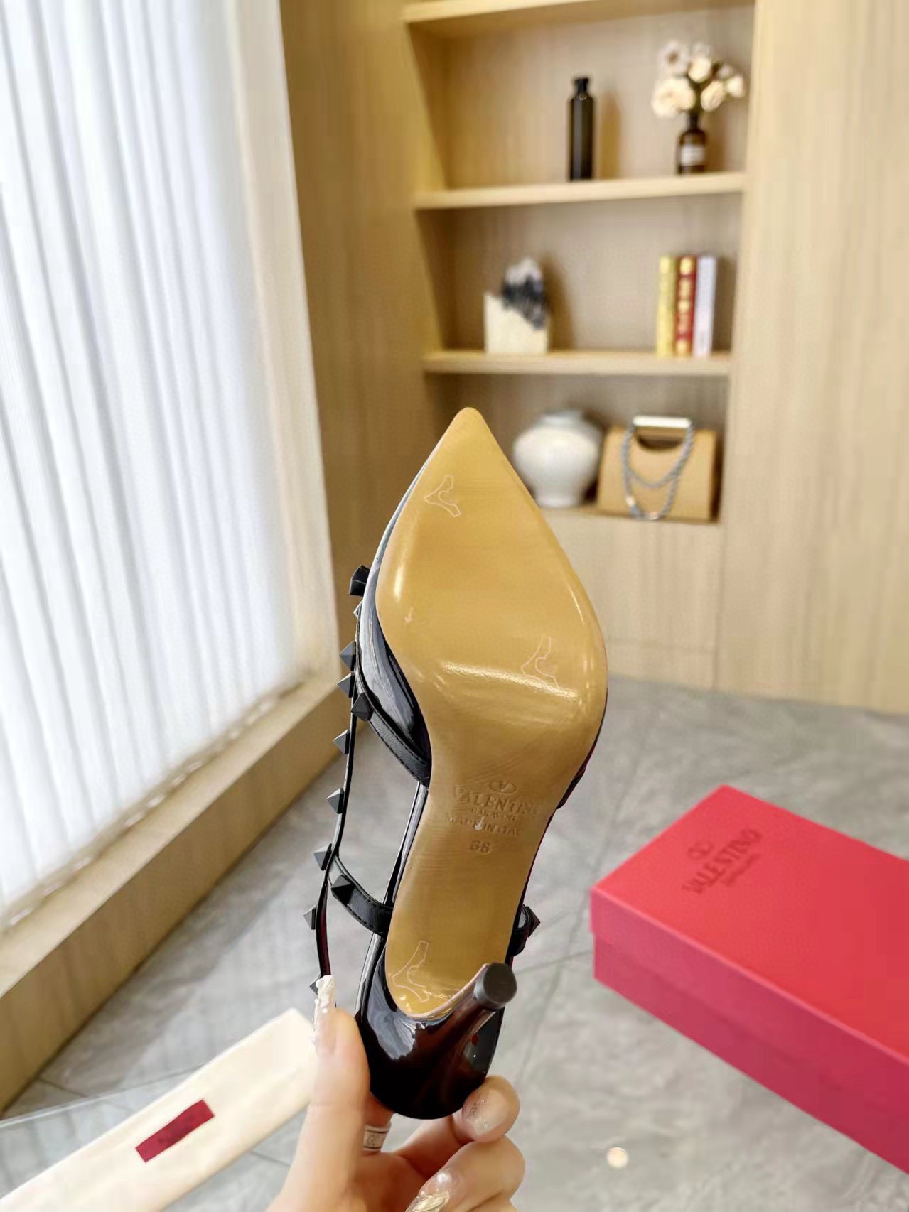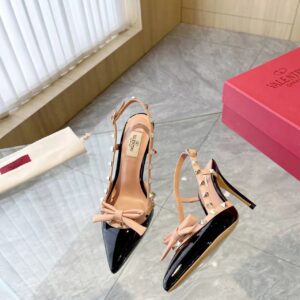 Valentino Rockstud Bow Slingback Pumps 100mm in Black Patent Leather