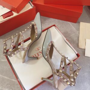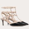Pierpaolo Piccioli debuted Valentino Garavani’s ‘Rockstud’ pumps on the runway in 2010 and the style has never lost its appeal. This caged version has been made from a combination of glossy patent and smooth leather. They’re decorated with pale-gold embellishments that are galvanized by hand to retain their glossy shine over time.