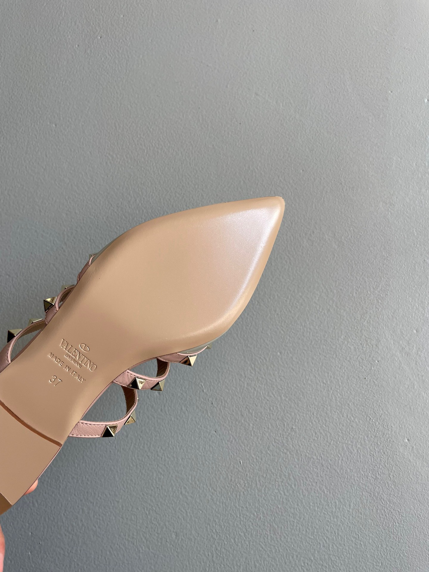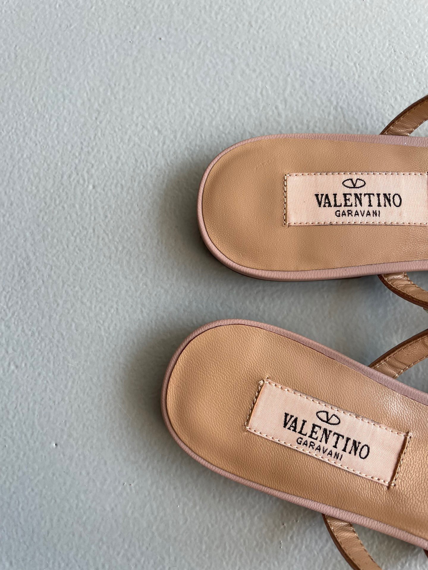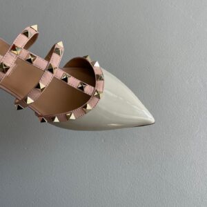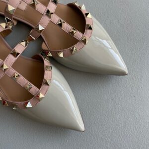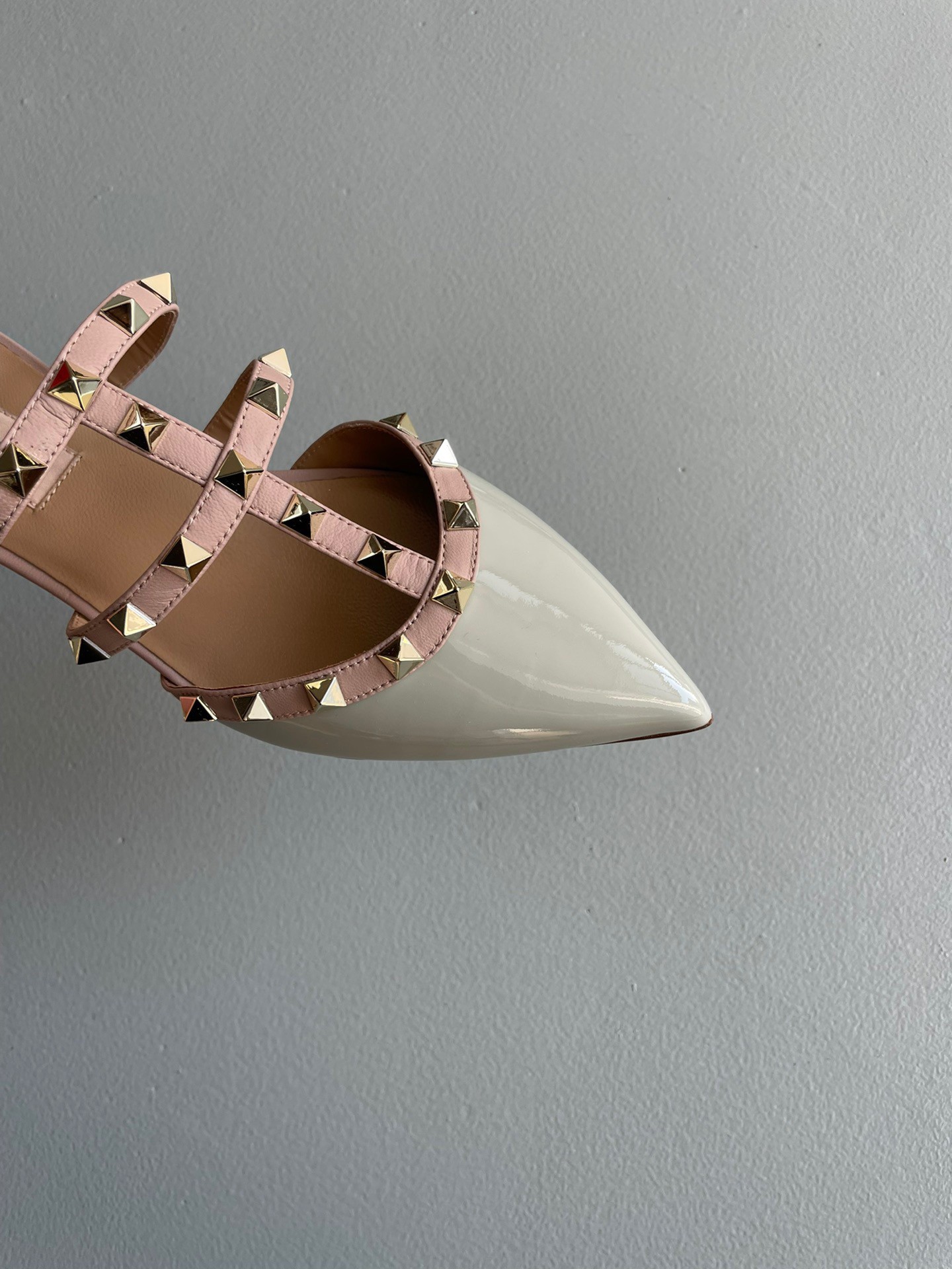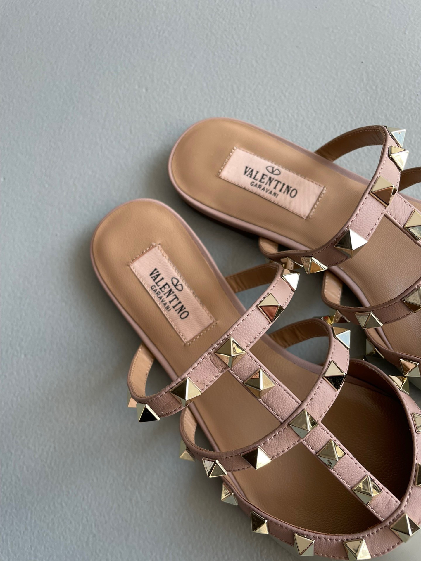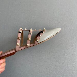 Valentino Rockstud Flat Mules In Opal-grey Patent Leather