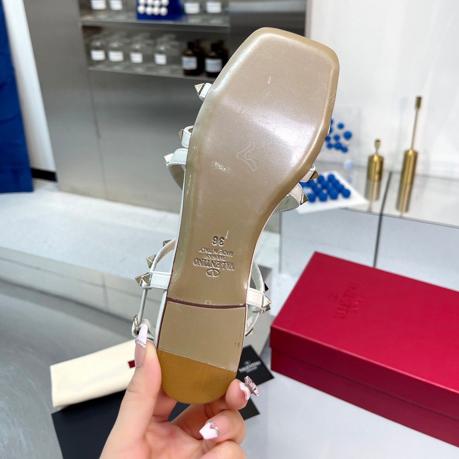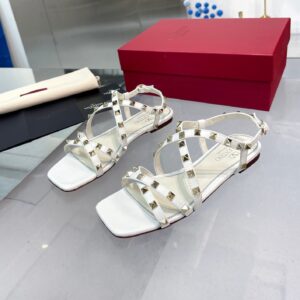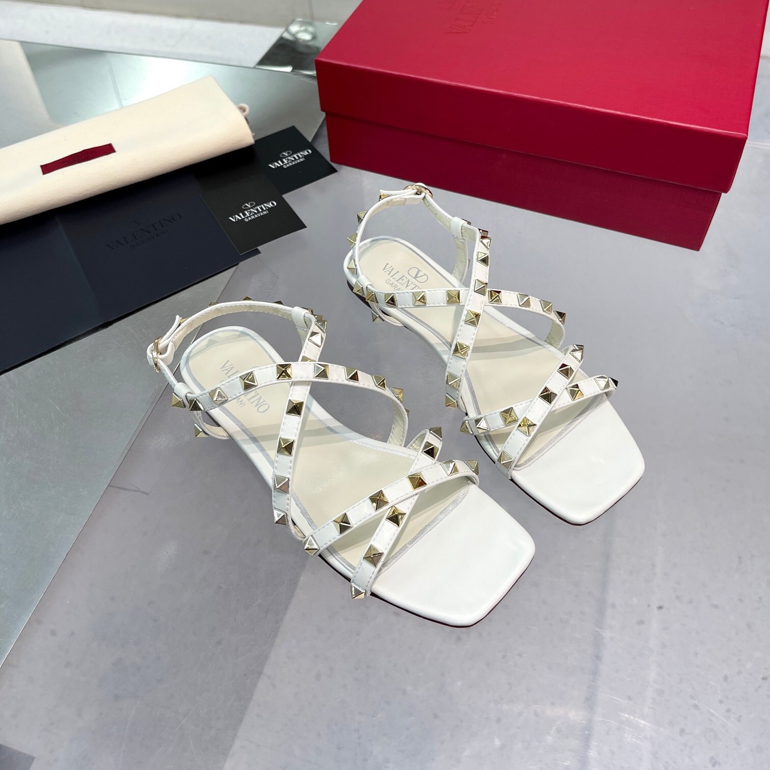Valentino Rockstud Flat Sandals with Straps in White Leather