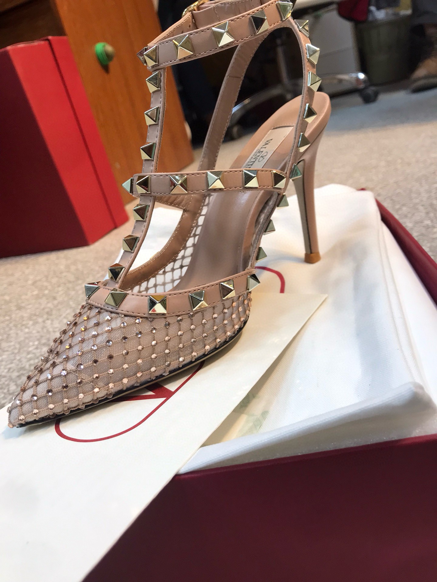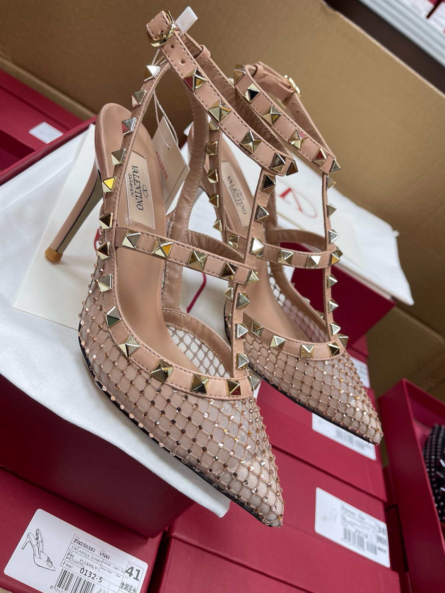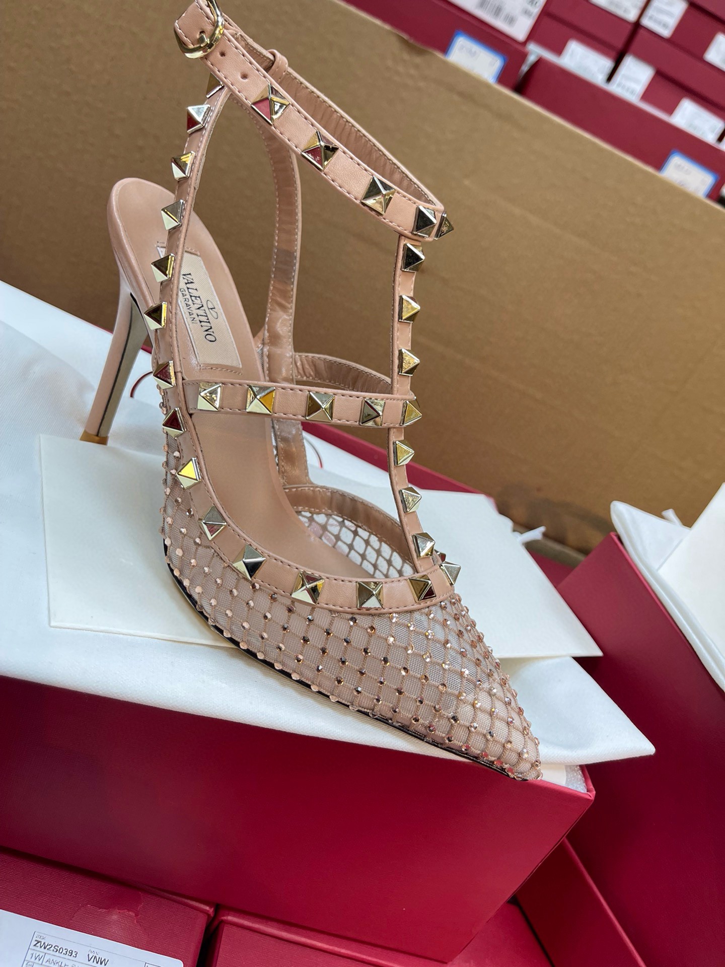 Valentino Rockstud Pumps 100mm in Nude Mesh with Crystal