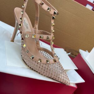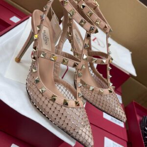 Crafted from mesh and leather trim and sculpted to a pointed-toe silhouette, these Valentino Garavani pumps feature mesh inserts embellished with rhinestones. They’re finished with signature Rockstud detailing — a motif inspired by ‘bugnatos’, often seen on palazzo-style buildings in Rome.