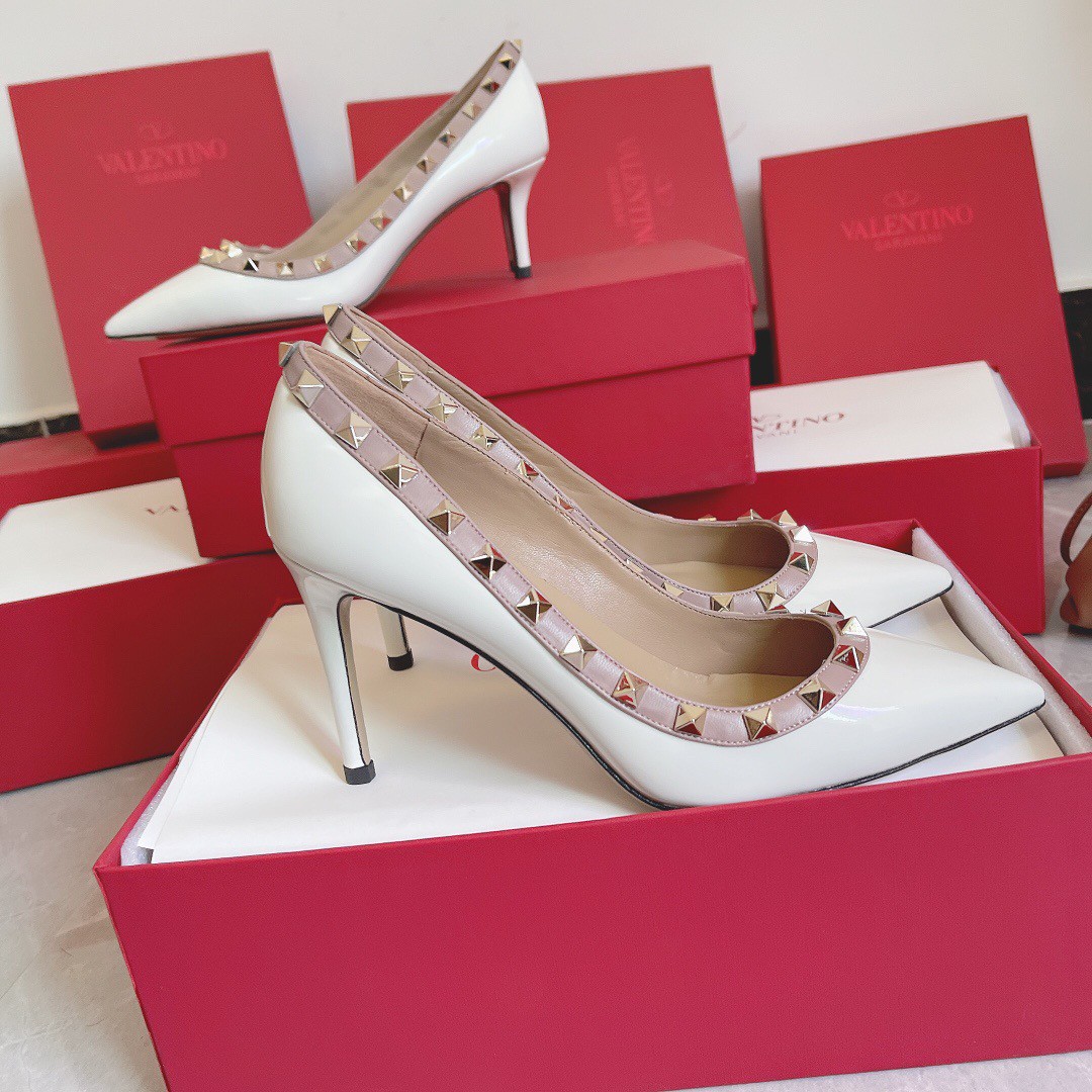 Valentino Rockstud Pumps 100mm In White Patent Leather