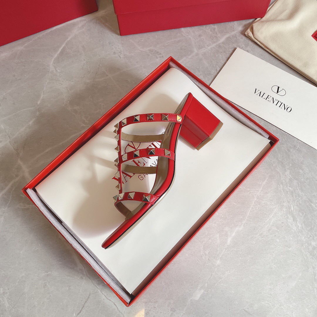 Valentino Rockstud Slide Sandals 60mm In Red Calfskin