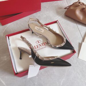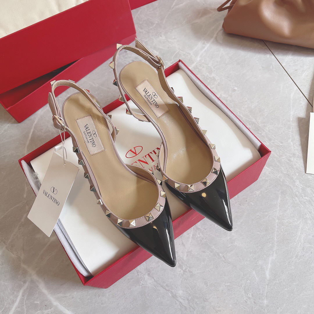 Valentino Rockstud Slingback Pumps 50mm In Black Patent Leather