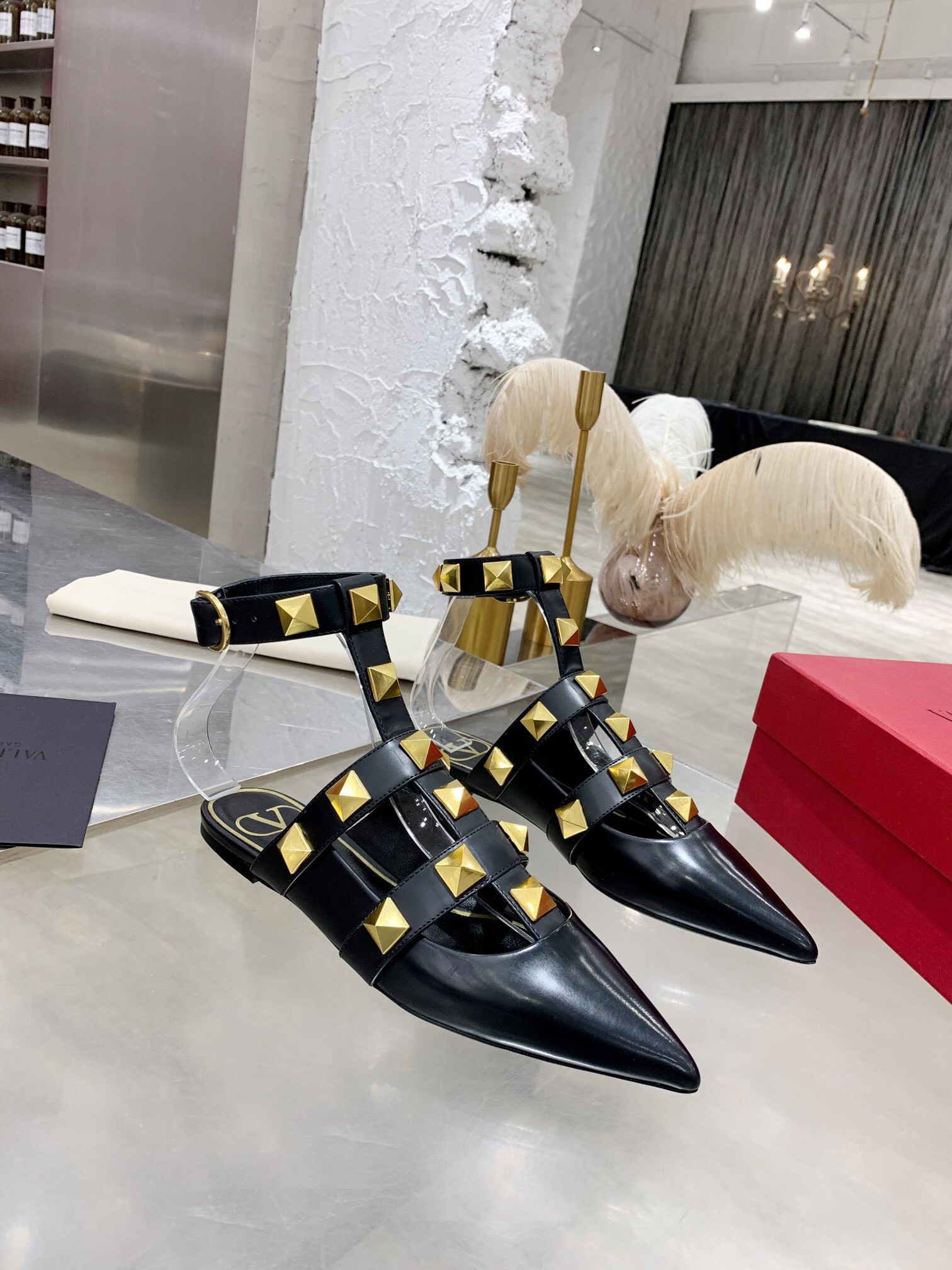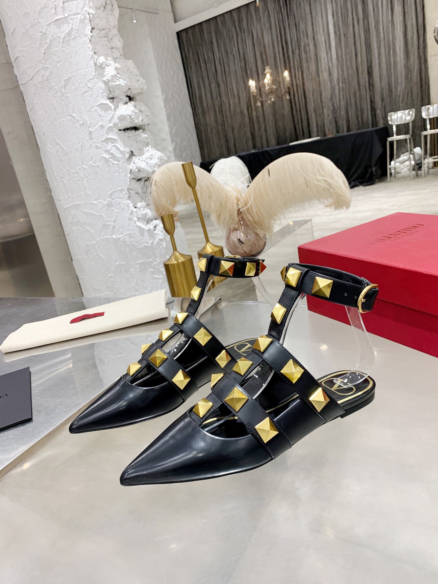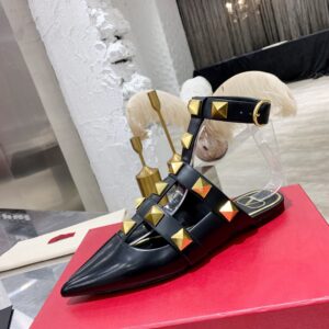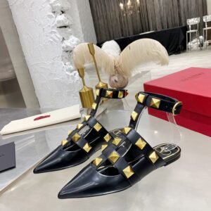 Valentino Roman Stud Ballet Flats In Black Calfskin