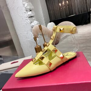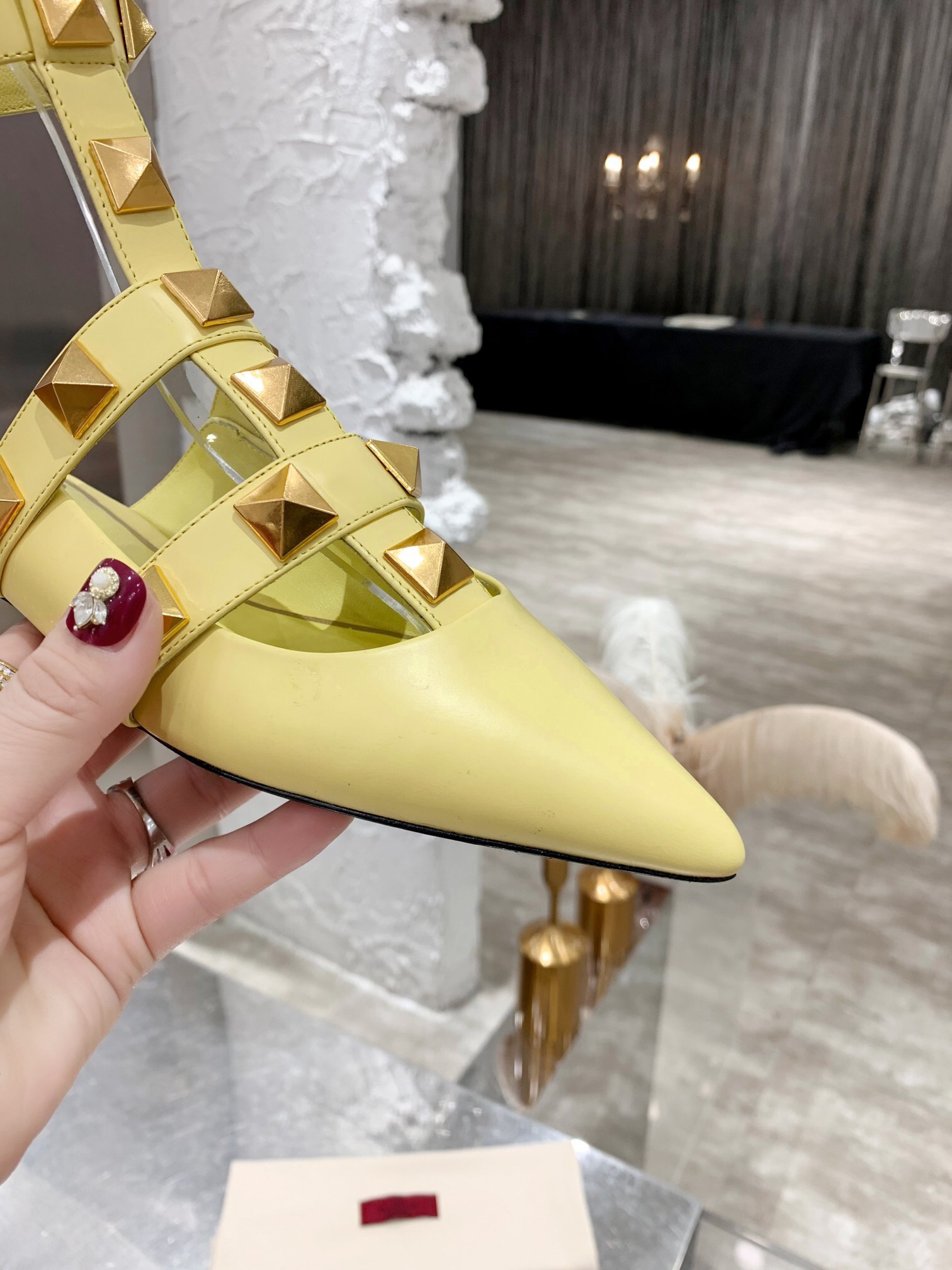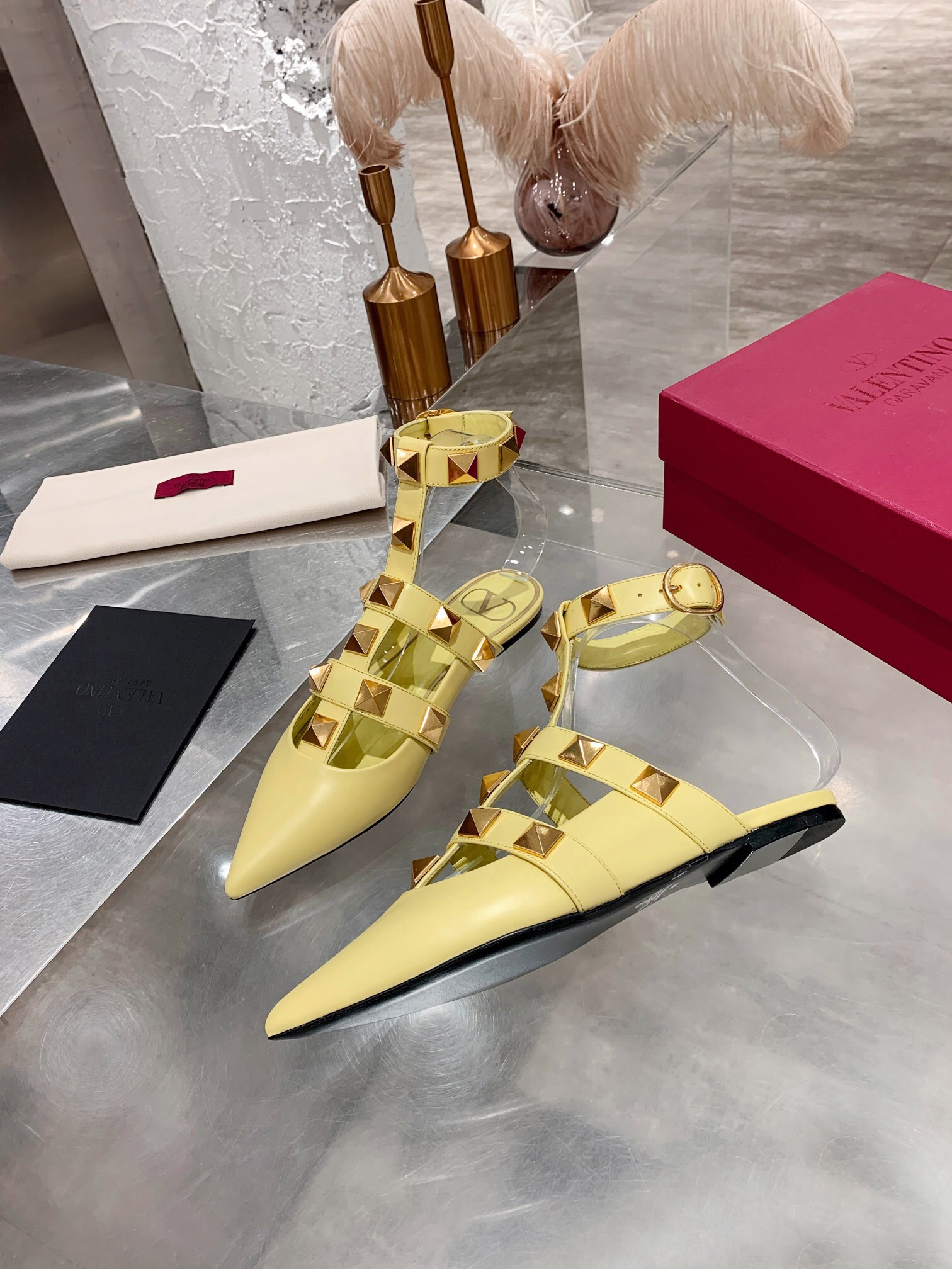 Valentino Roman Stud Ballet Flats In Yellow Calfskin