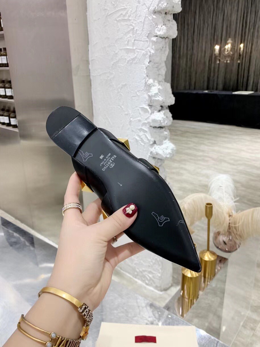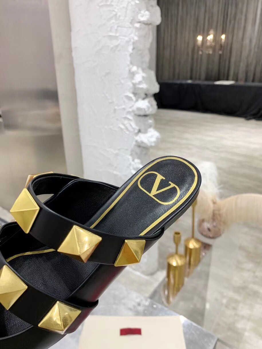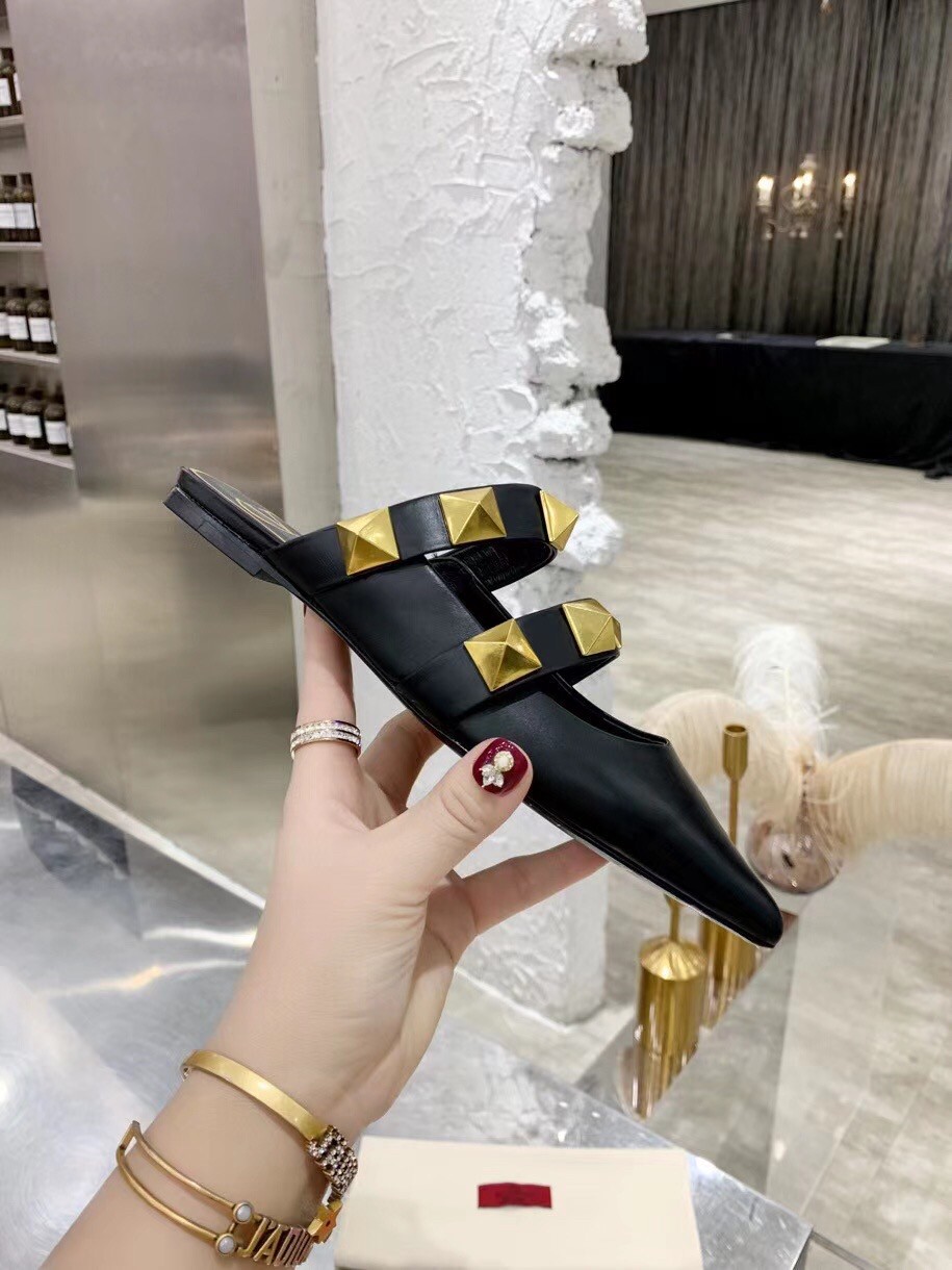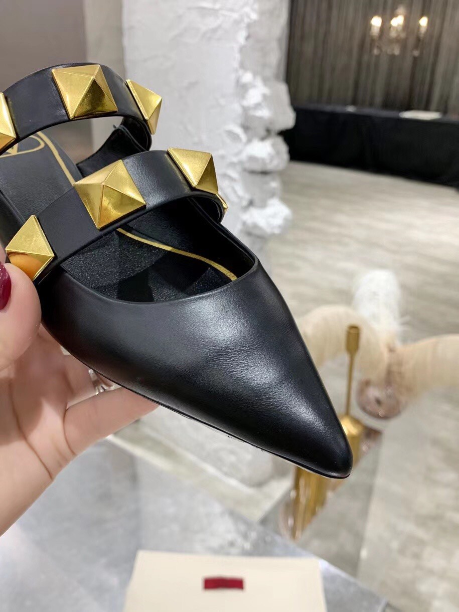 Valentino Roman Stud Flat Mules In Black Leather