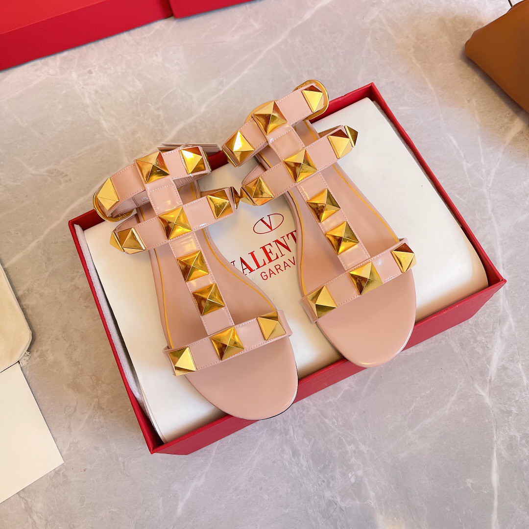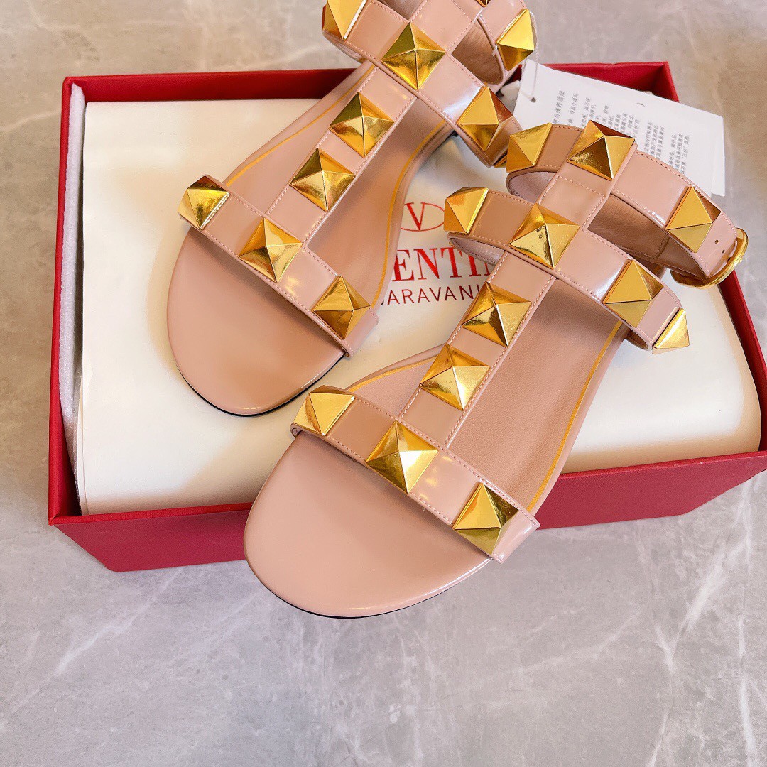 Valentino Roman Stud Flat Sandals In Rose Cannelle Calfskin