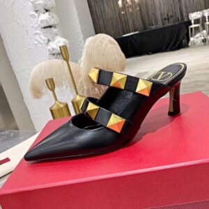Ensure a stylish entrace in the Roman Stud leather mules from Valentino Garavani. Made from smooth calfskin leather, they’re secured with double straps that are punctuated with the label’s golden signature studs.