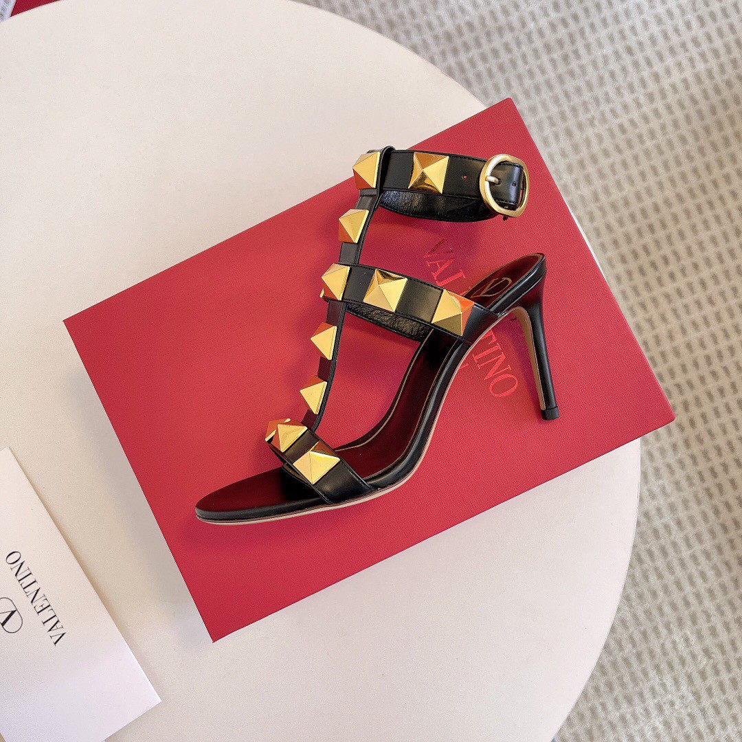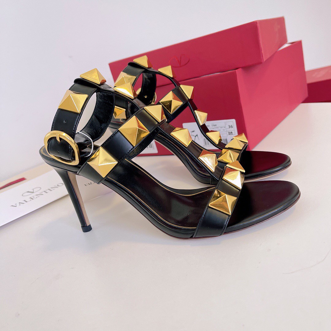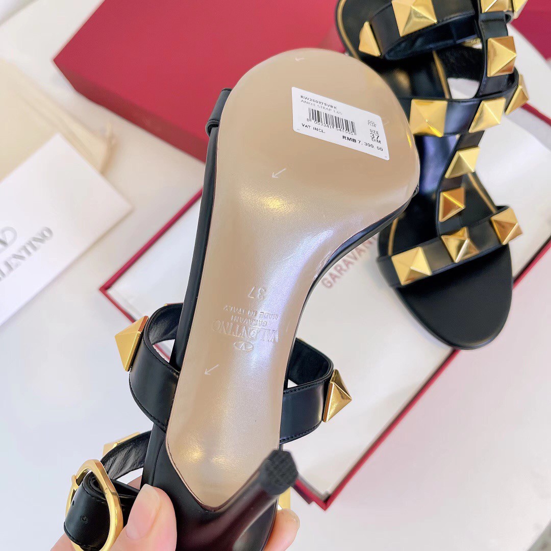 Valentino Roman Stud Pumps 80mm In Black Calfskin