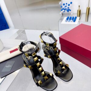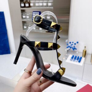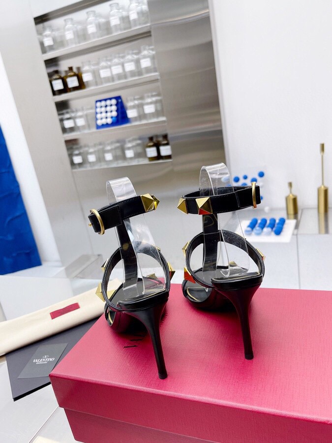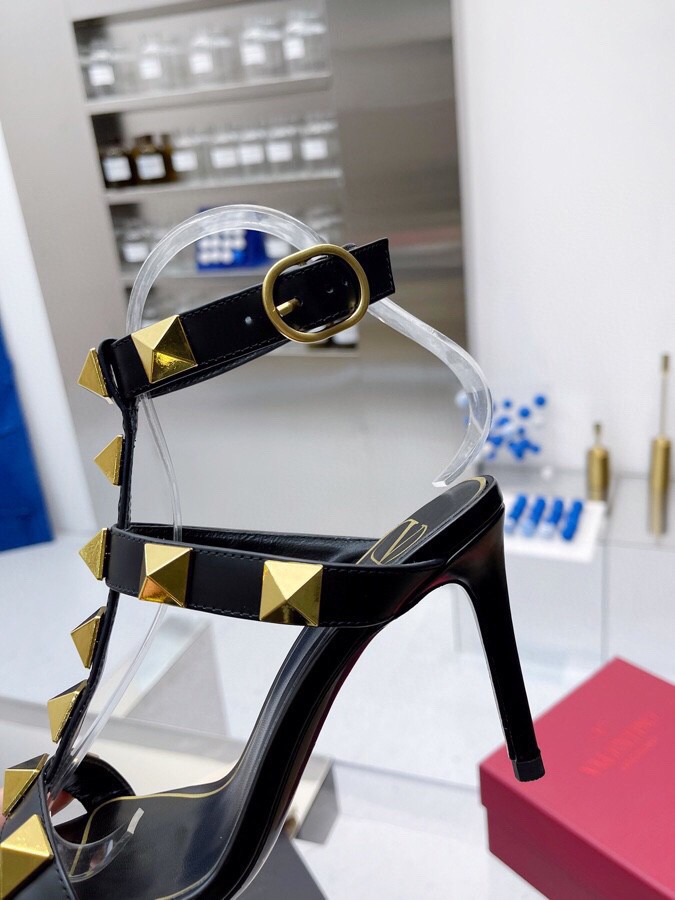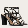 Valentino Roman Stud Sandals 100mm In Black Calfskin