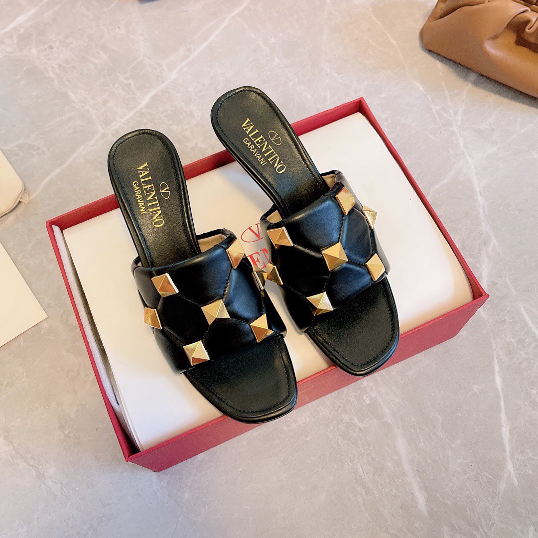 Valentino Roman Stud Slide Sandals 65mm In Black Leather