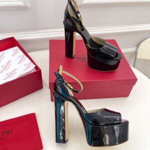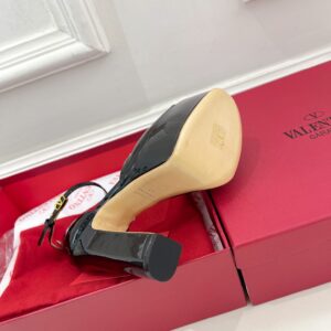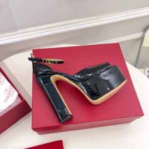 Valentino Tan-Go Platform Sandals 155mm In Black Patent Leather