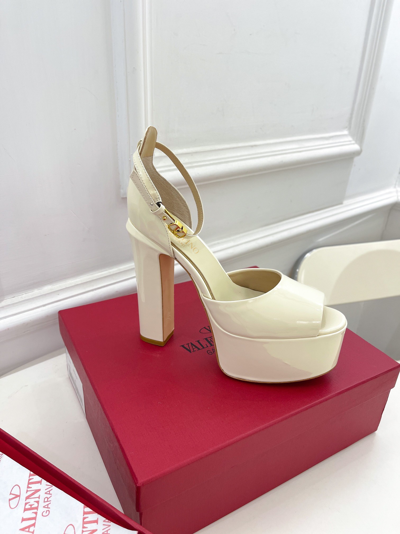 – Adjustable ankle strap with customized VLogo Signature buckle