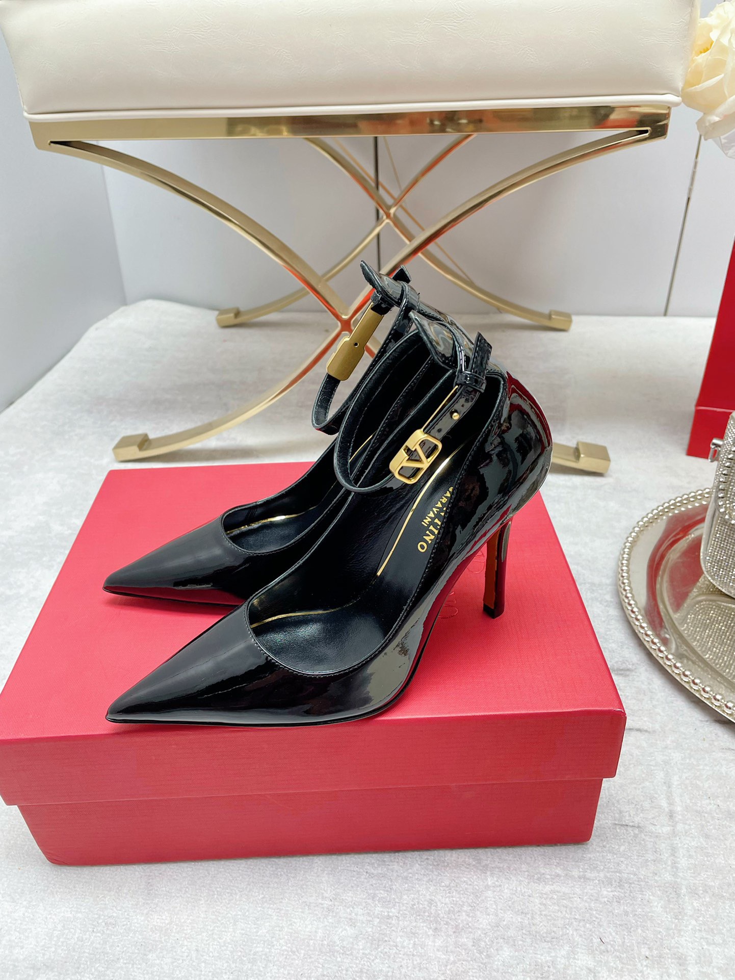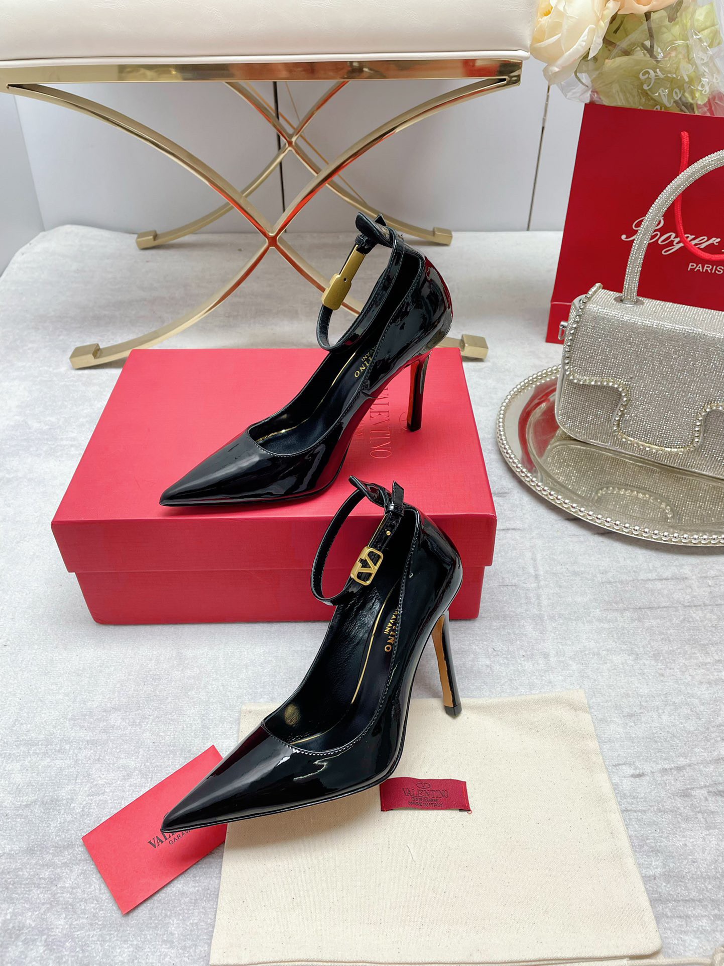 Valentino Tan-Go Pumps 100mm In Black Patent Leather