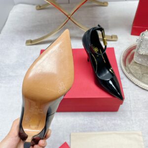 Valentino Garavani’s Tan-Go pumps are tipped with the label’s VLOGO monogram at the straps. Made from glossy patent leather, their sharp silhouette is accentuated by pointed toes, stiletto heels and dramatically tapered ankle collars. They were worn on the iconic Fall ’22 runway with an all-pink outfit – be bold and do the same.