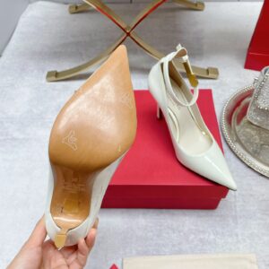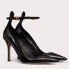 Valentino Garavani’s Tan-Go pumps are tipped with the label’s VLOGO monogram at the straps. Made from glossy patent leather, their sharp silhouette is accentuated by pointed toes, stiletto heels and dramatically tapered ankle collars. They were worn on the iconic Fall ’22 runway with an all-pink outfit – be bold and do the same.