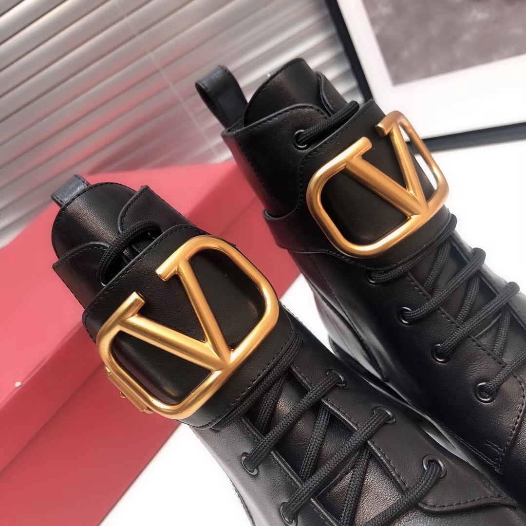 Embellished with the label’s newest logo, the VLOGO ankle boots from Valentino Garavani bring luxurious edge to the classic combat silhouette. Crafted from smooth leather, the lace-up design features a side-zip closure for easy on-off wear, and it’s set on a lugged rubber sole for proper traction. Style yours with printed midi dresses for an androgynous mix.