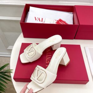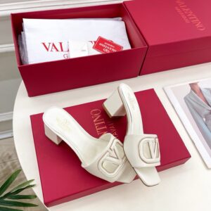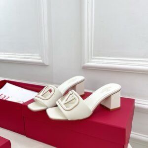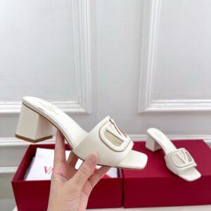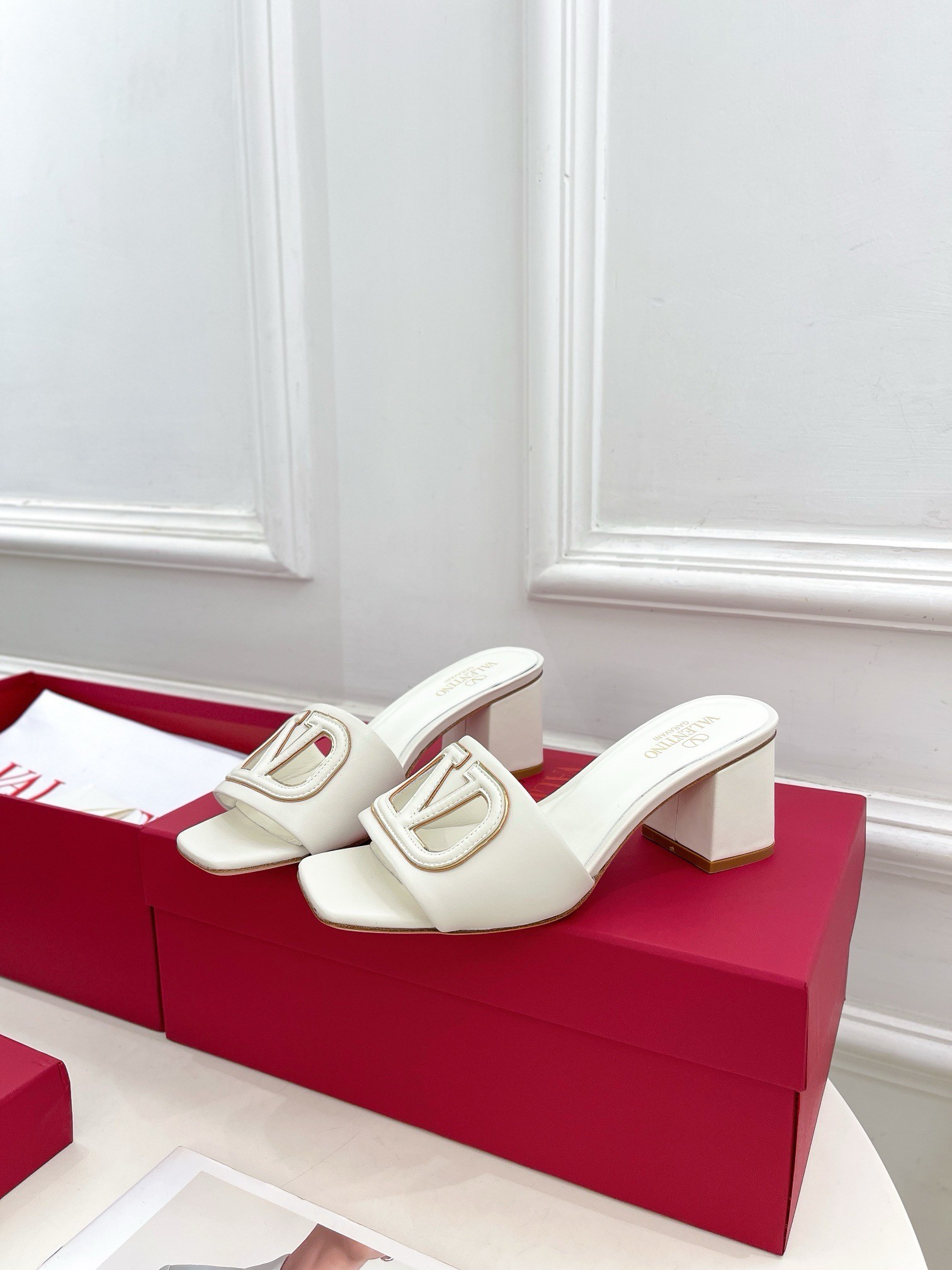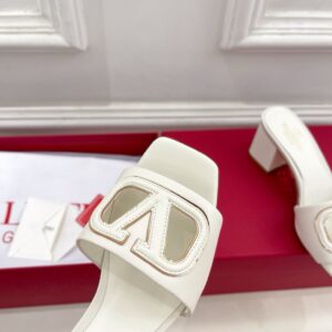 Valentino VLogo Cut-out Slide Sandals 60mm in White Leather