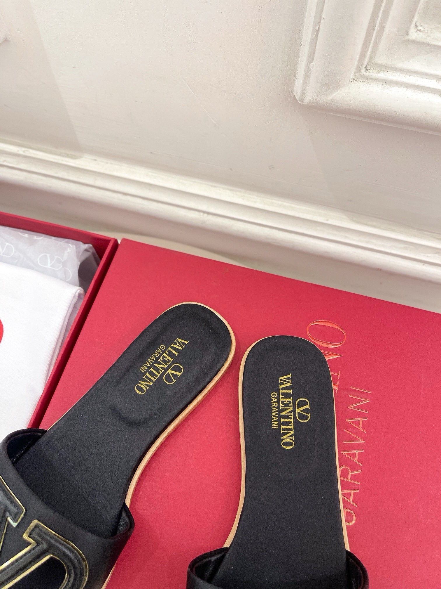 Valentino VLogo Cut-out Slide Sandals in Black Leather