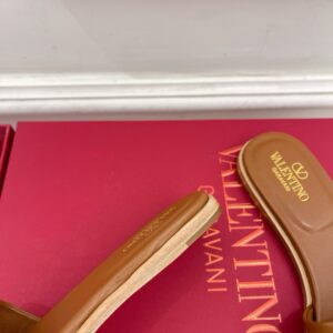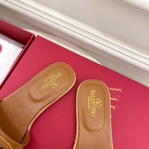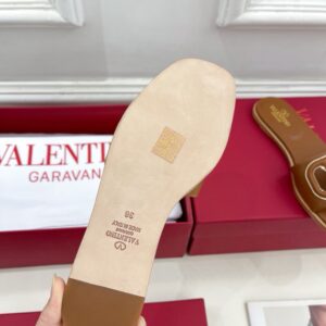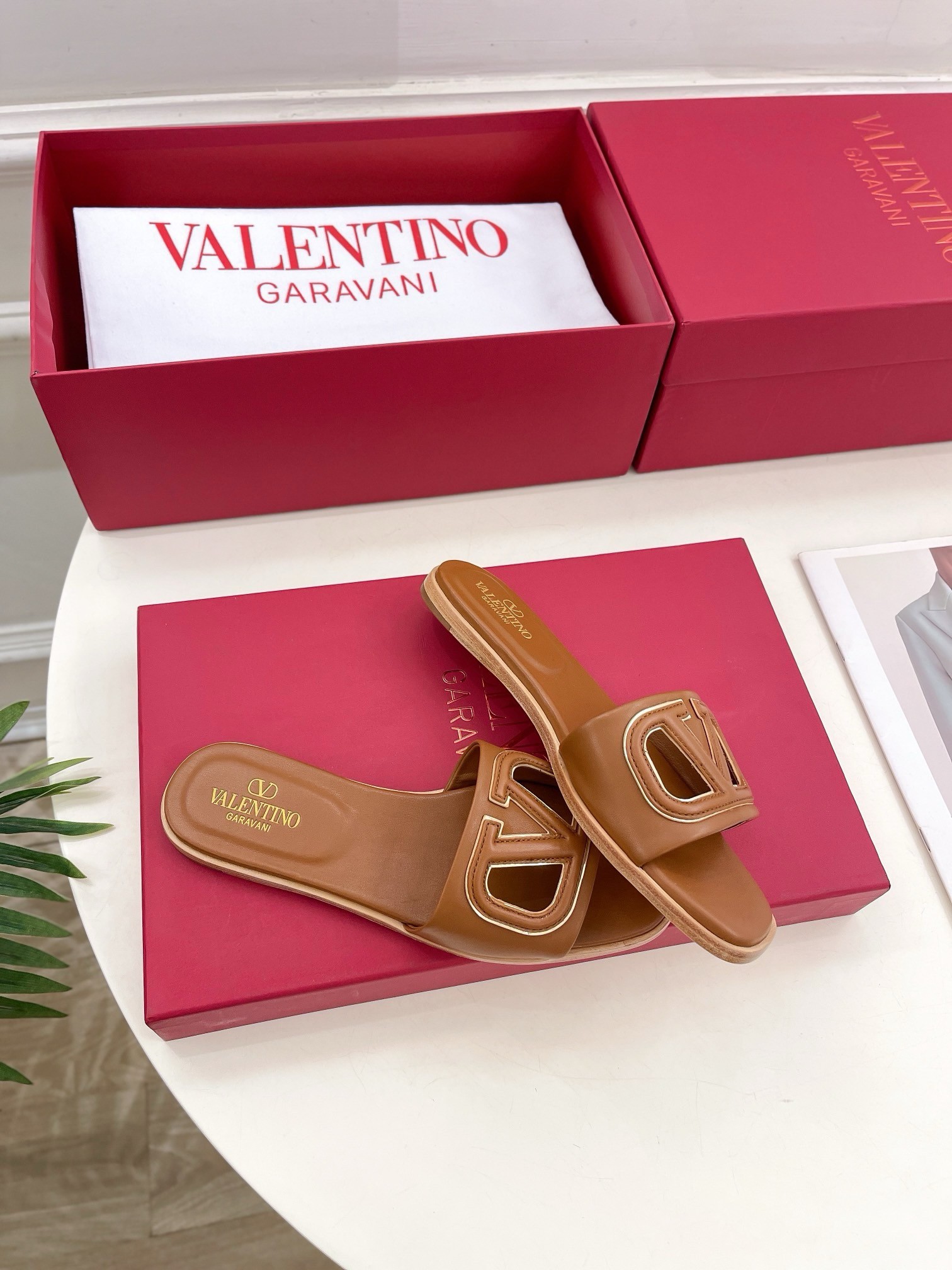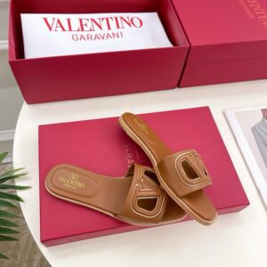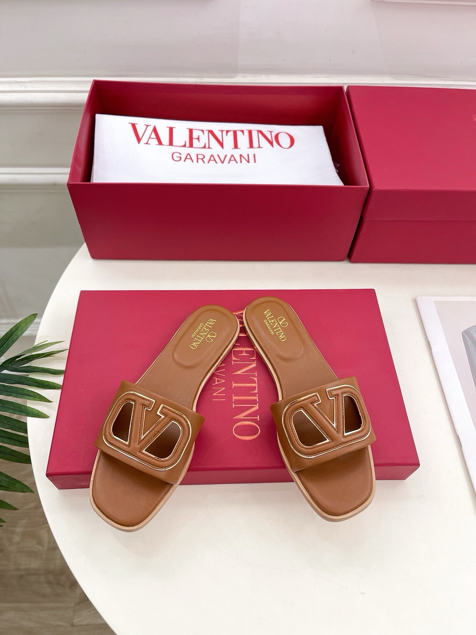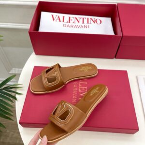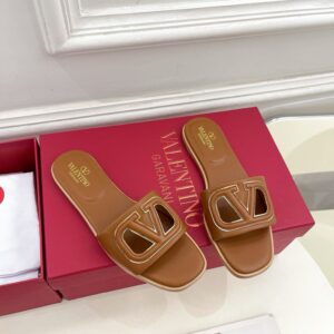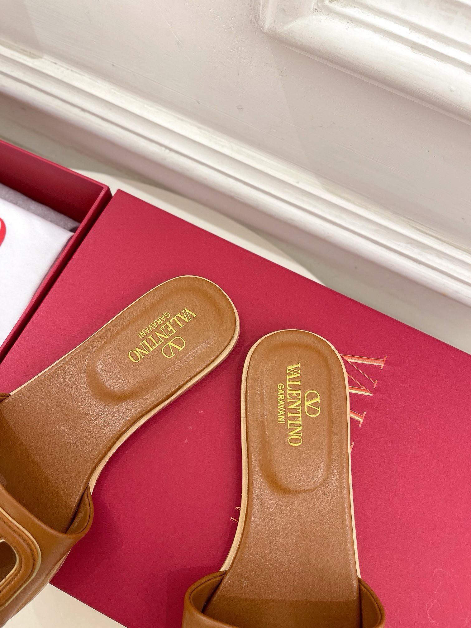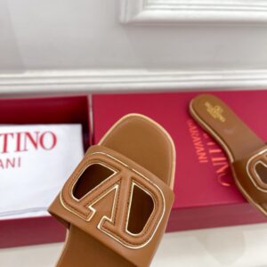 Valentino VLogo Cut-out Slide Sandals in Brown Leather
