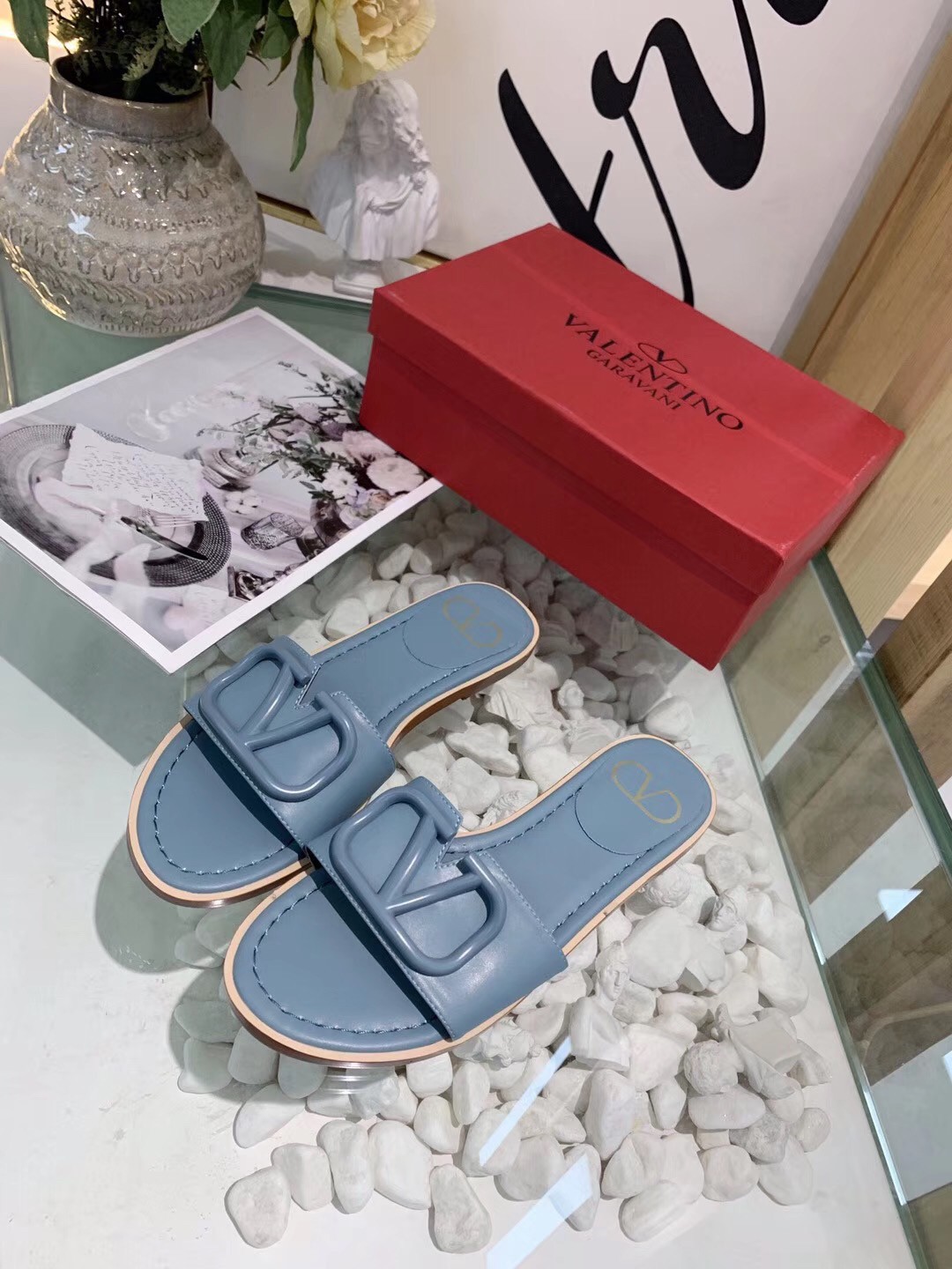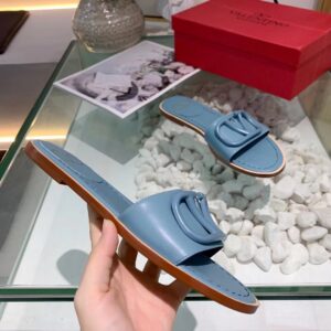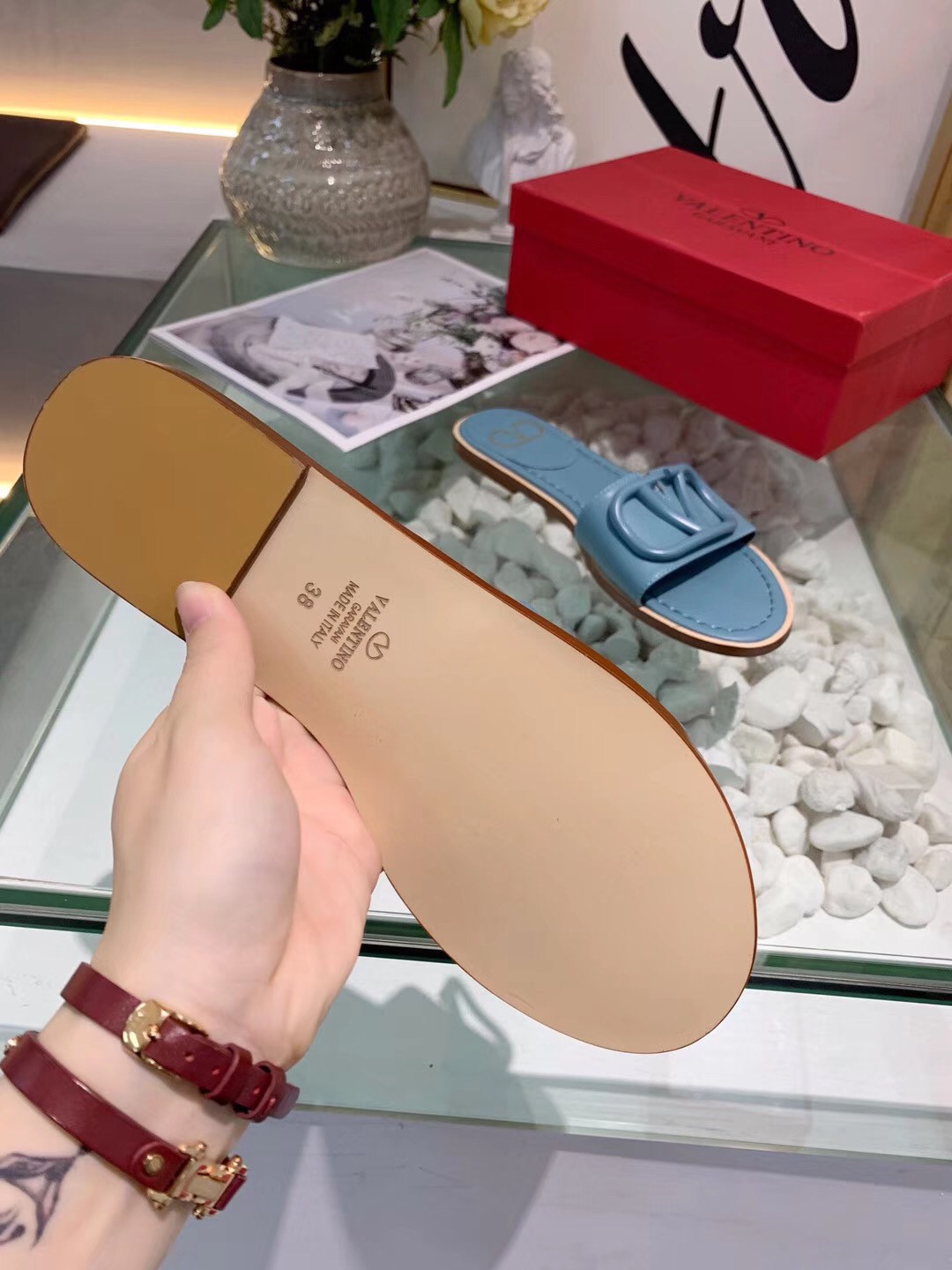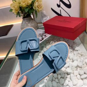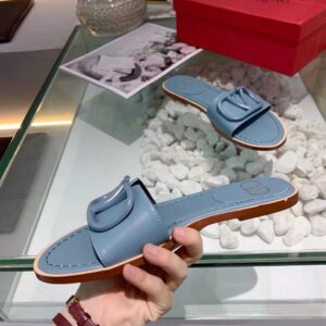 Valentino VLogo Signature Flat Slides In Blue Calfskin