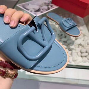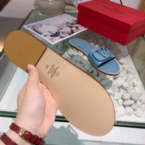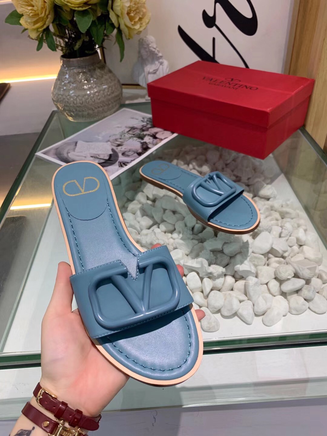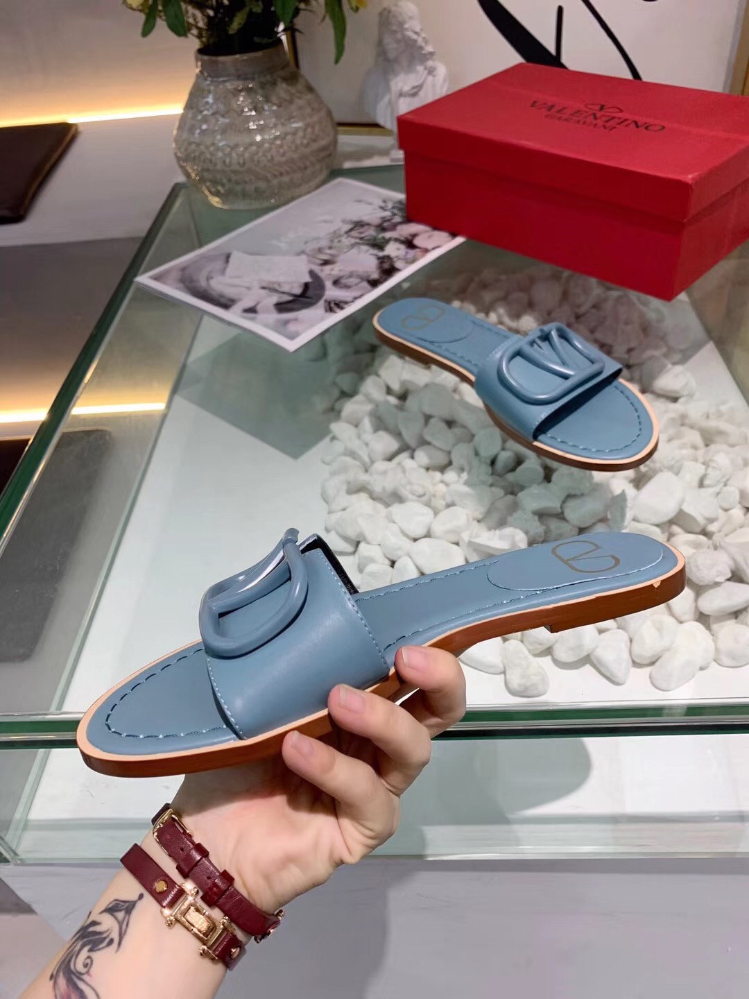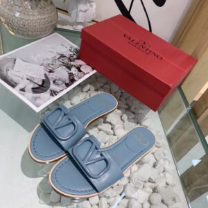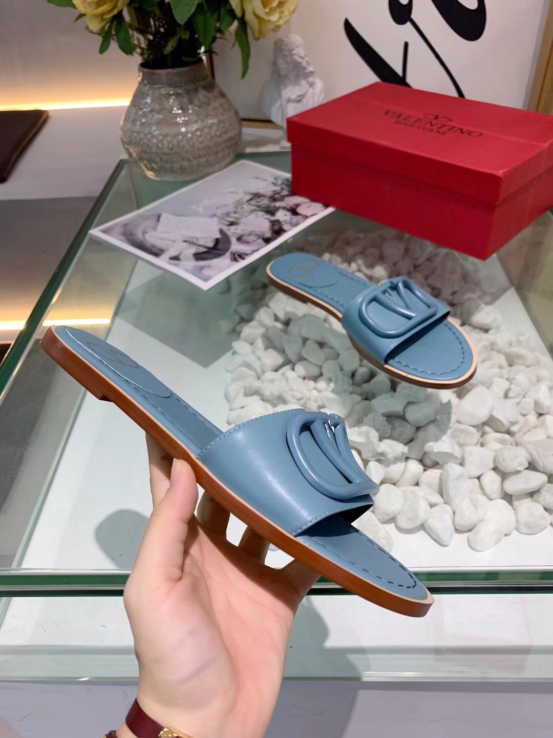 Valentino VLogo Signature Flat Slides In Blue Calfskin